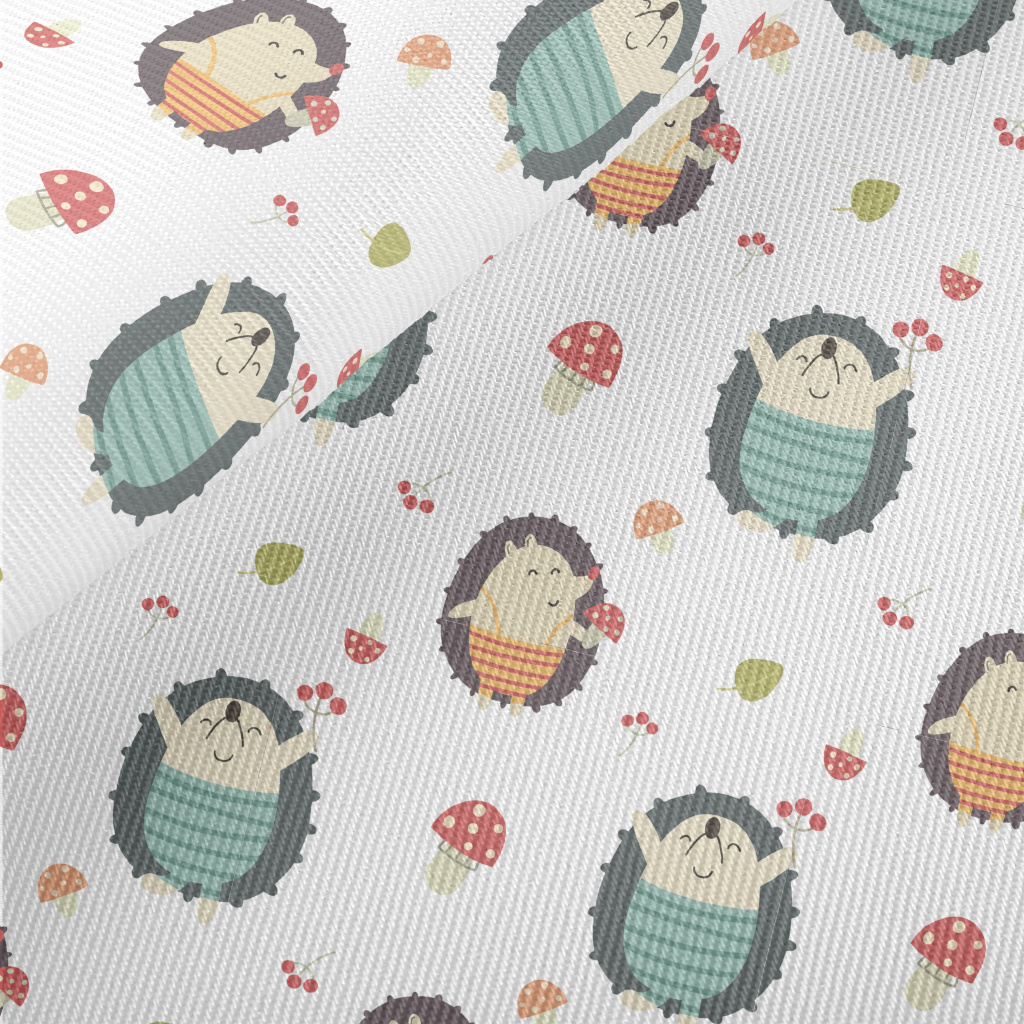 Cute Hedgehog Holding A Mushro Twill