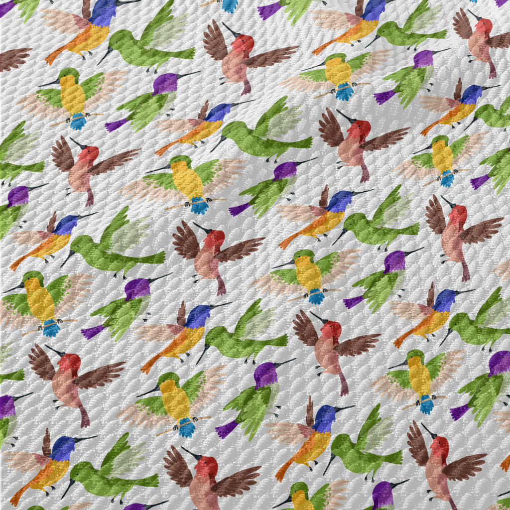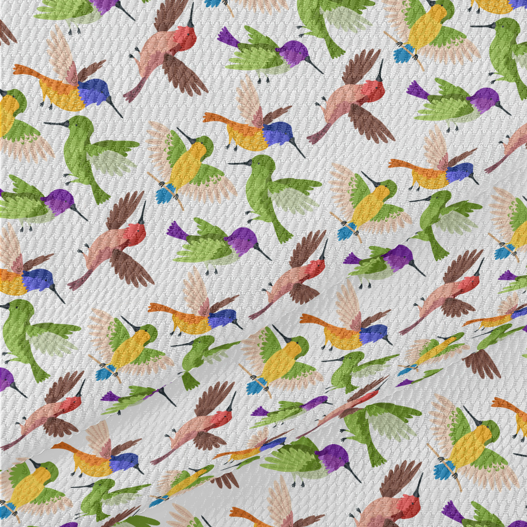 Colorful Hummingbird Flying Birdseye Piqué