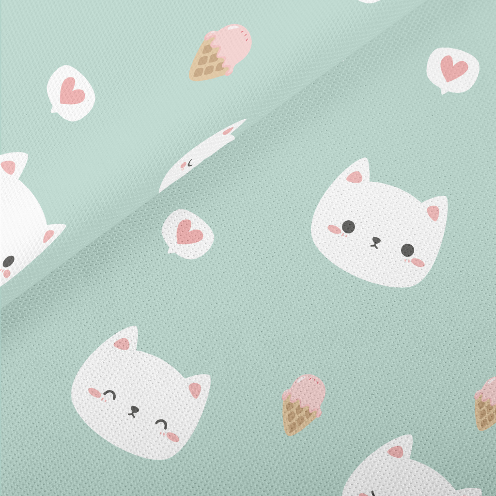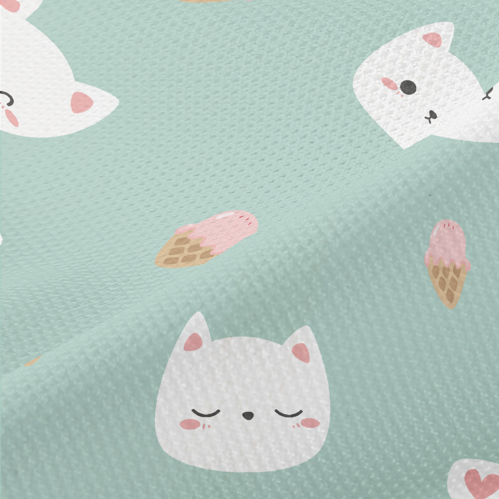 White Cat And Delicious Ice Cr Piqué