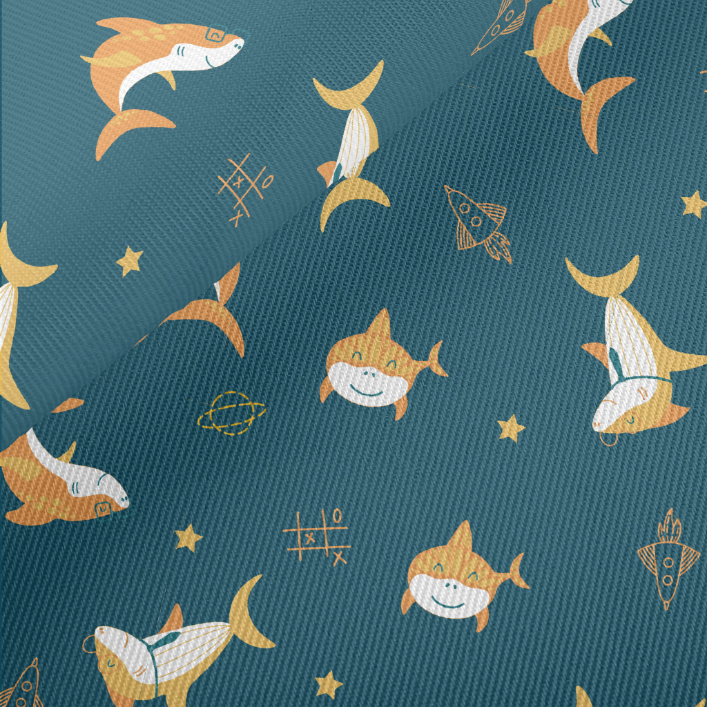 Shark And Rocket In The Air Midweight Cotton Poplin