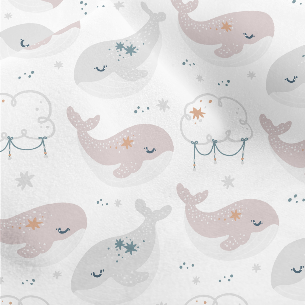 Cute Whale Clouds And Stars Micro Fleece