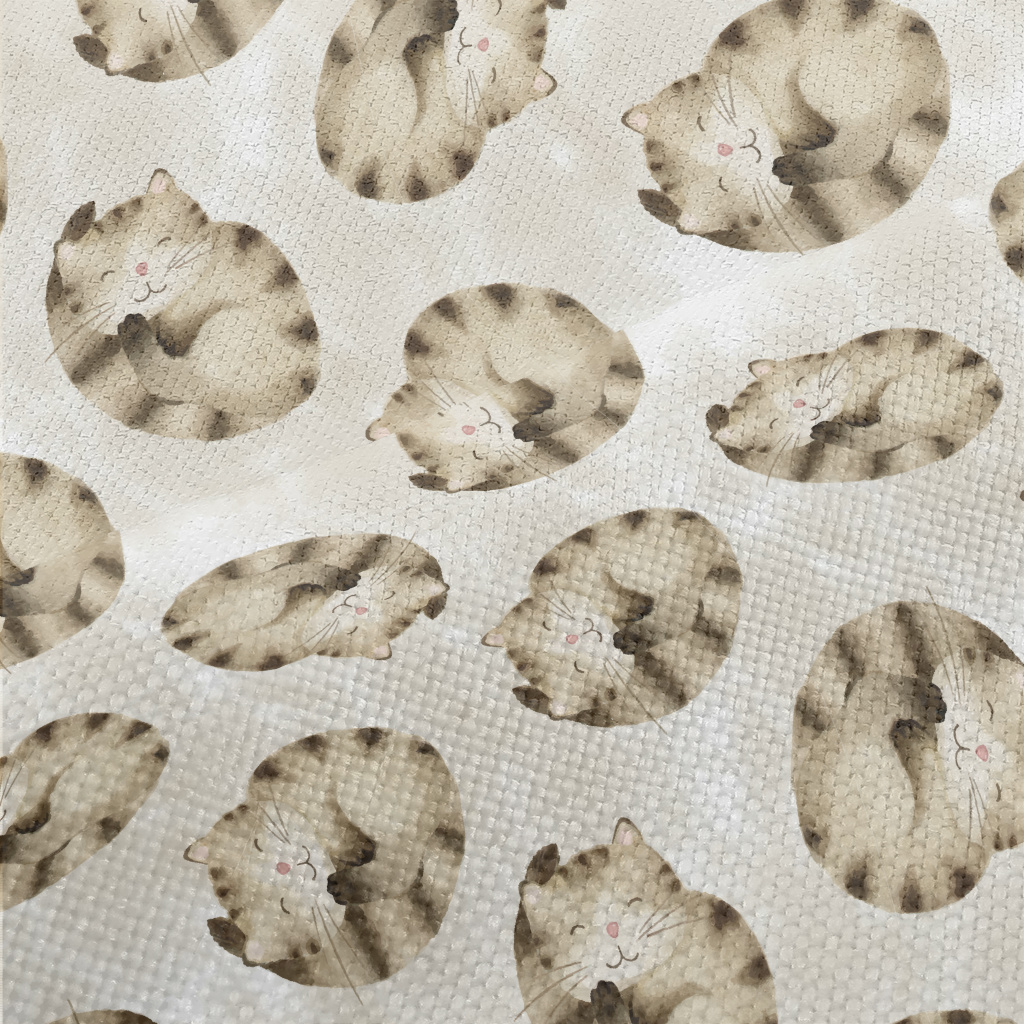 Striped Cat Curled Up Performance Linen