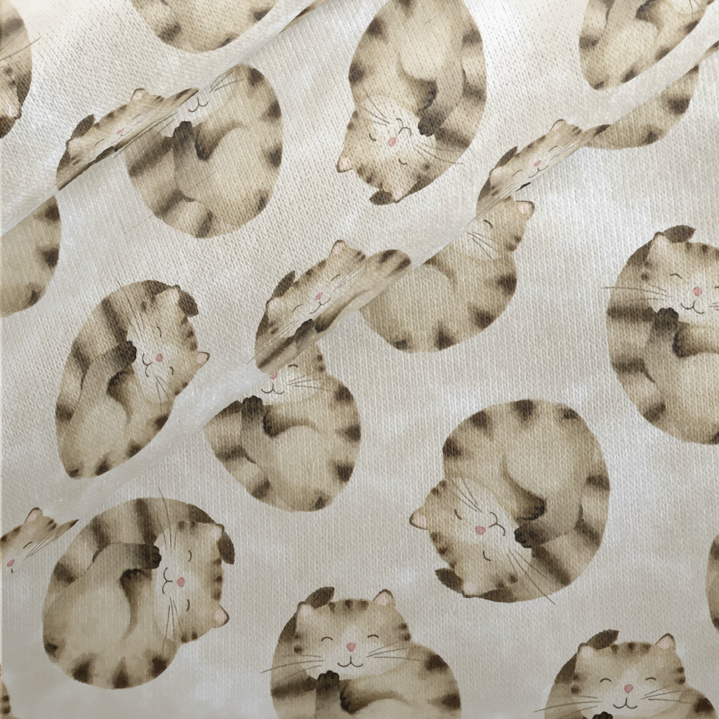 Striped Cat Curled Up Jersey Backed Fleece