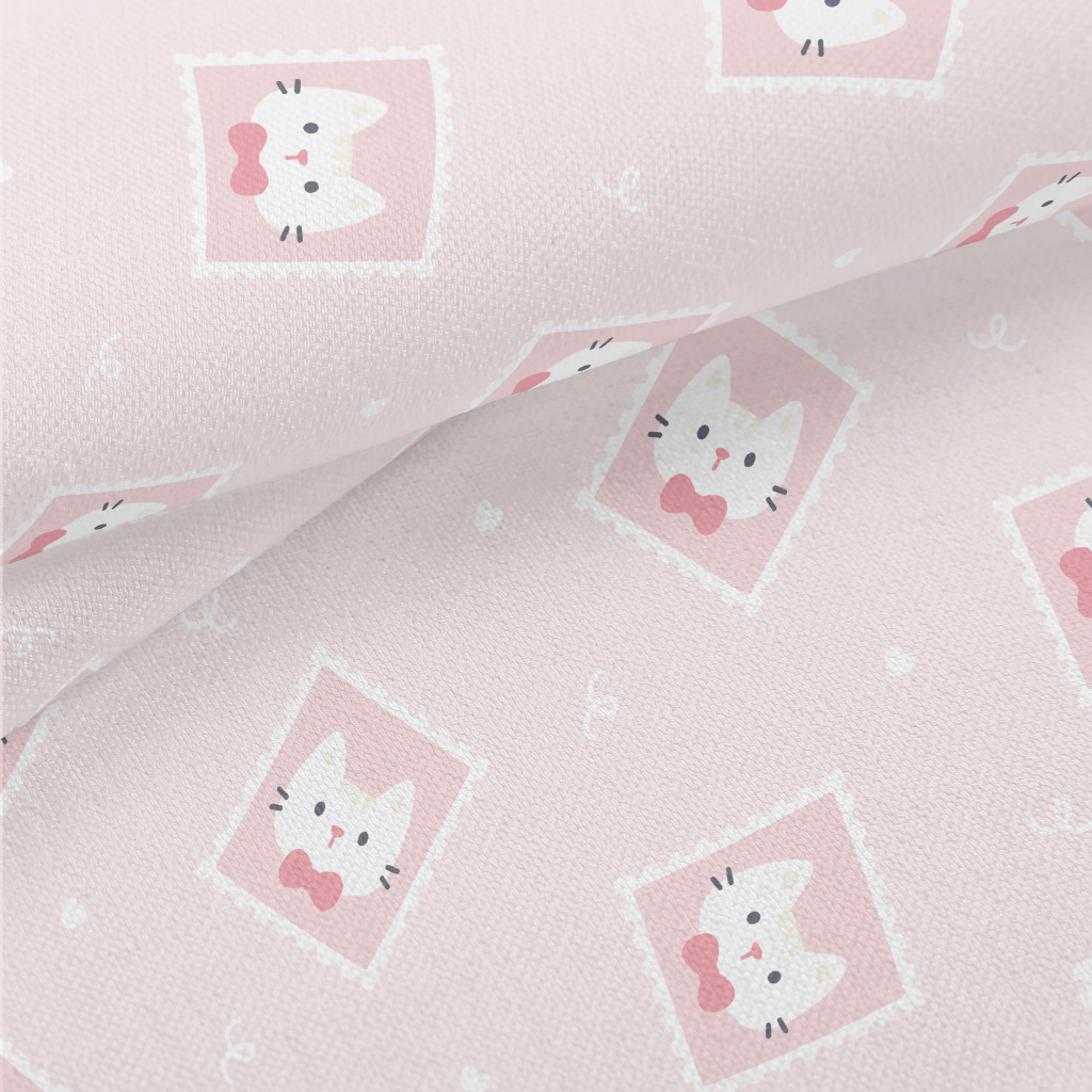 Cute Pink Cat Stamp Lightweight Performance Linen