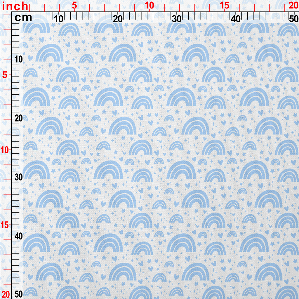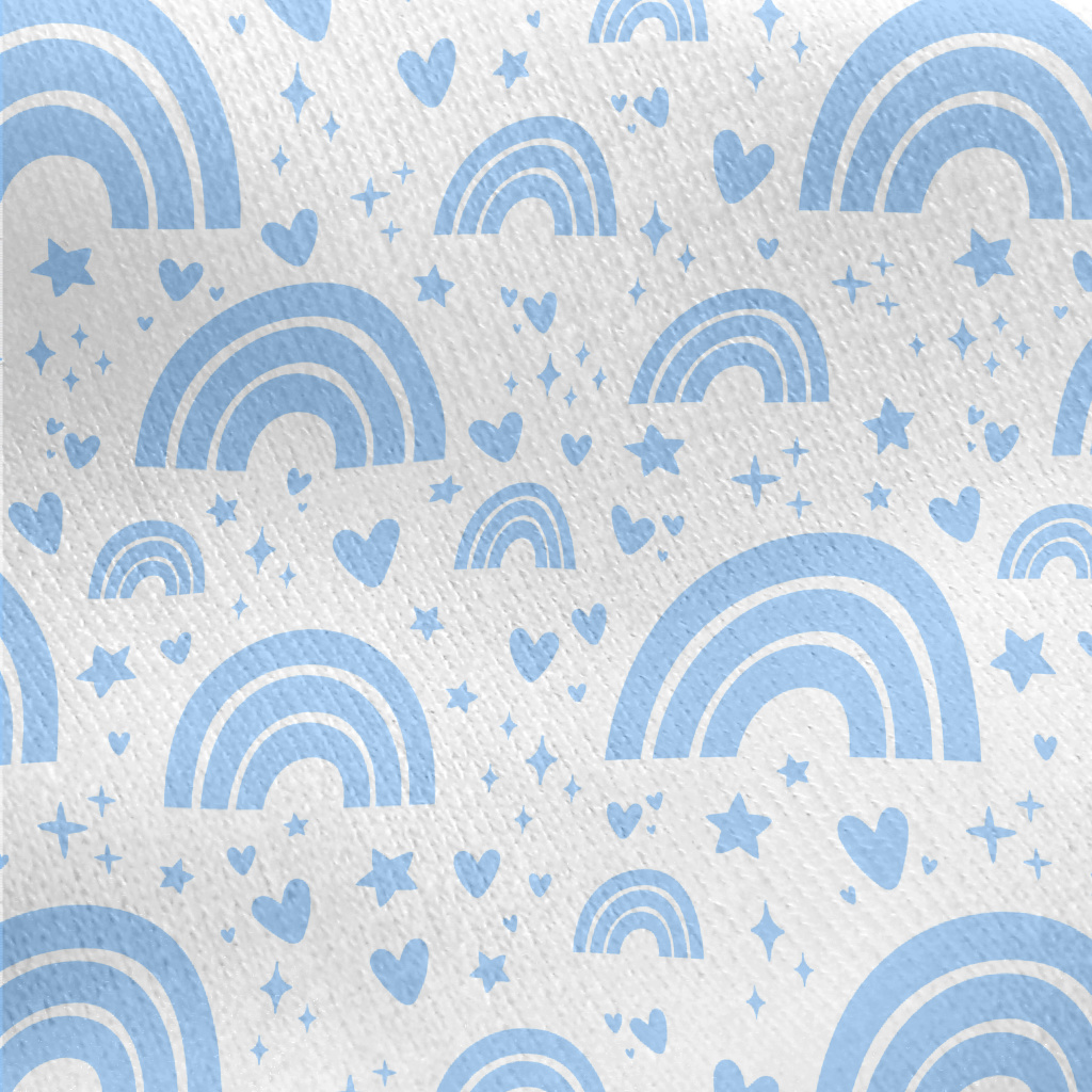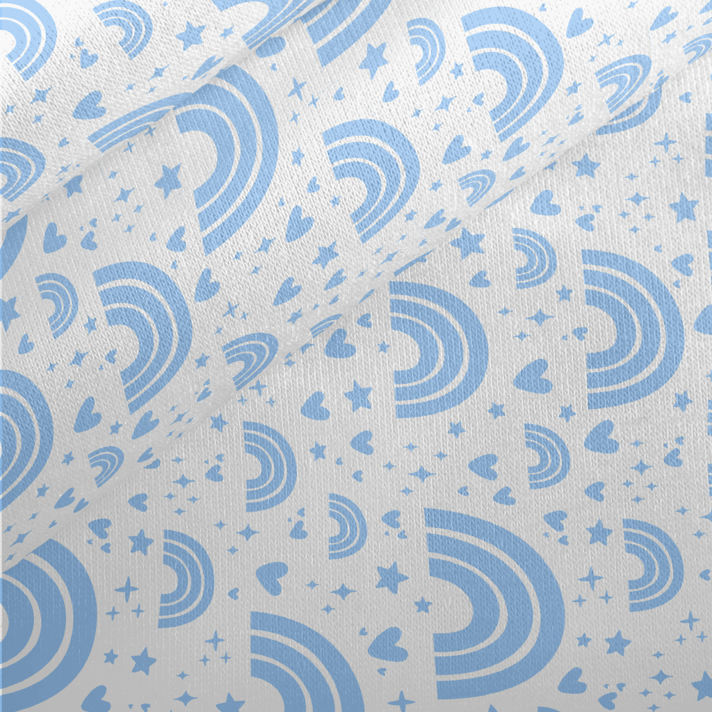 Aqua Blue Rainbow With Stars Jersey Backed Fleece