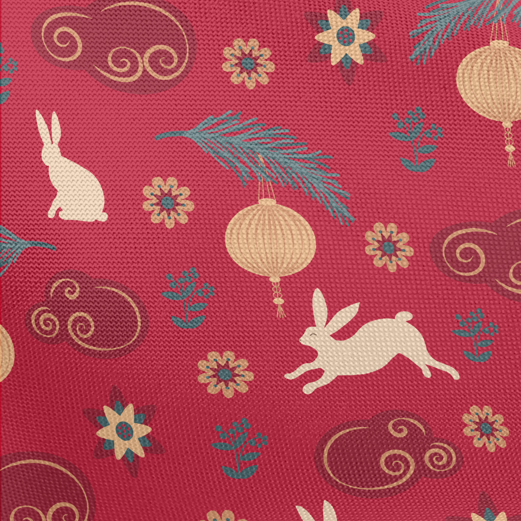 New Year's Rabbit Pattern Pongee