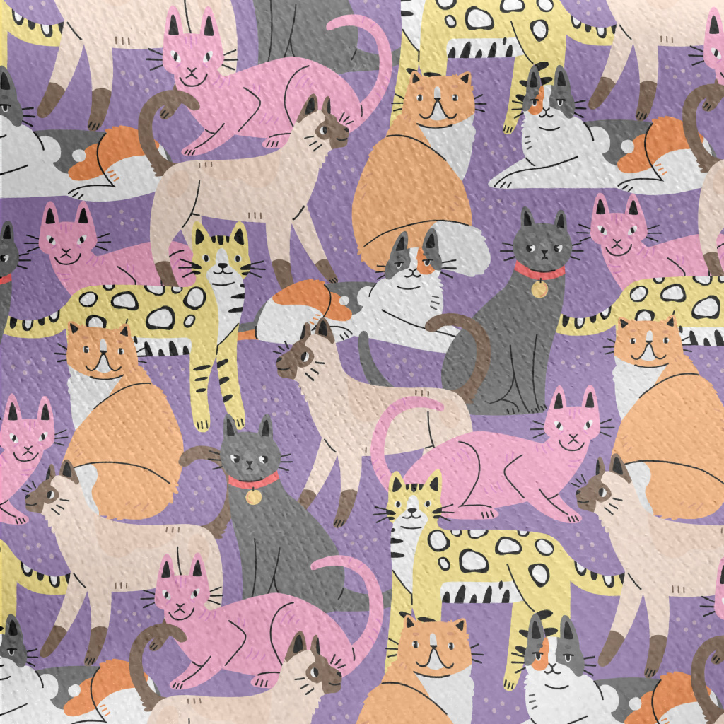 Elegant Colorful Cats Jersey Backed Fleece