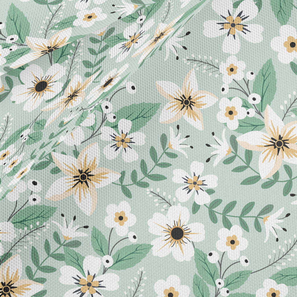 Colorful White Flowers And Gre Waterproof Oxford
