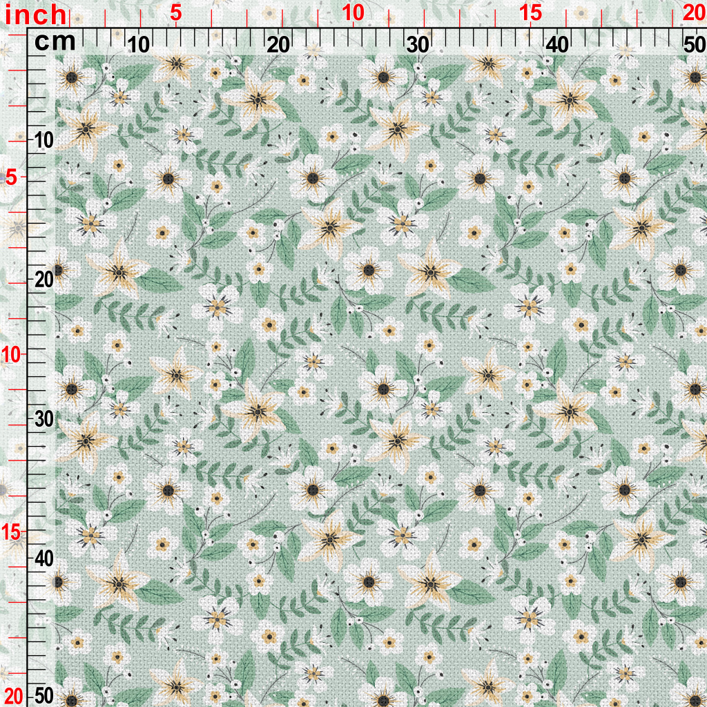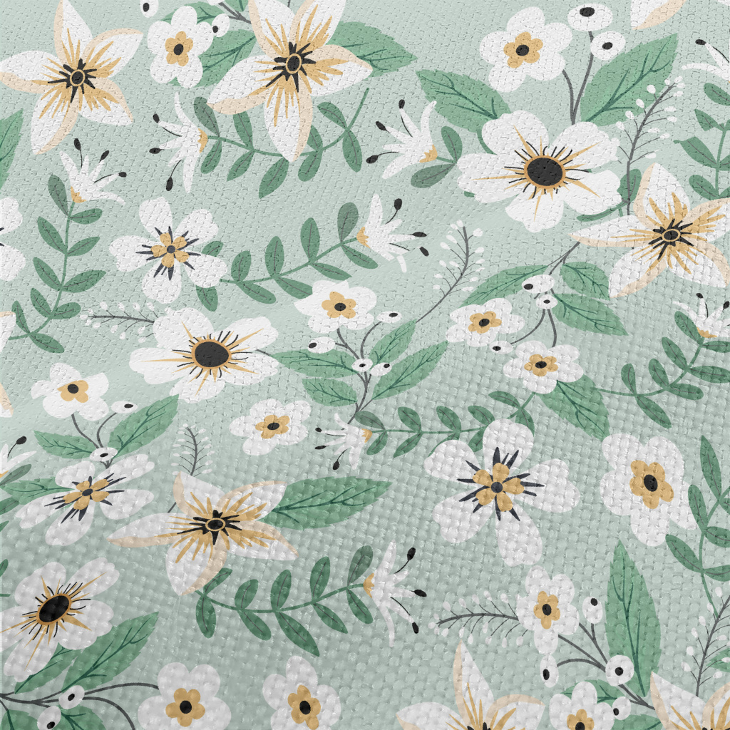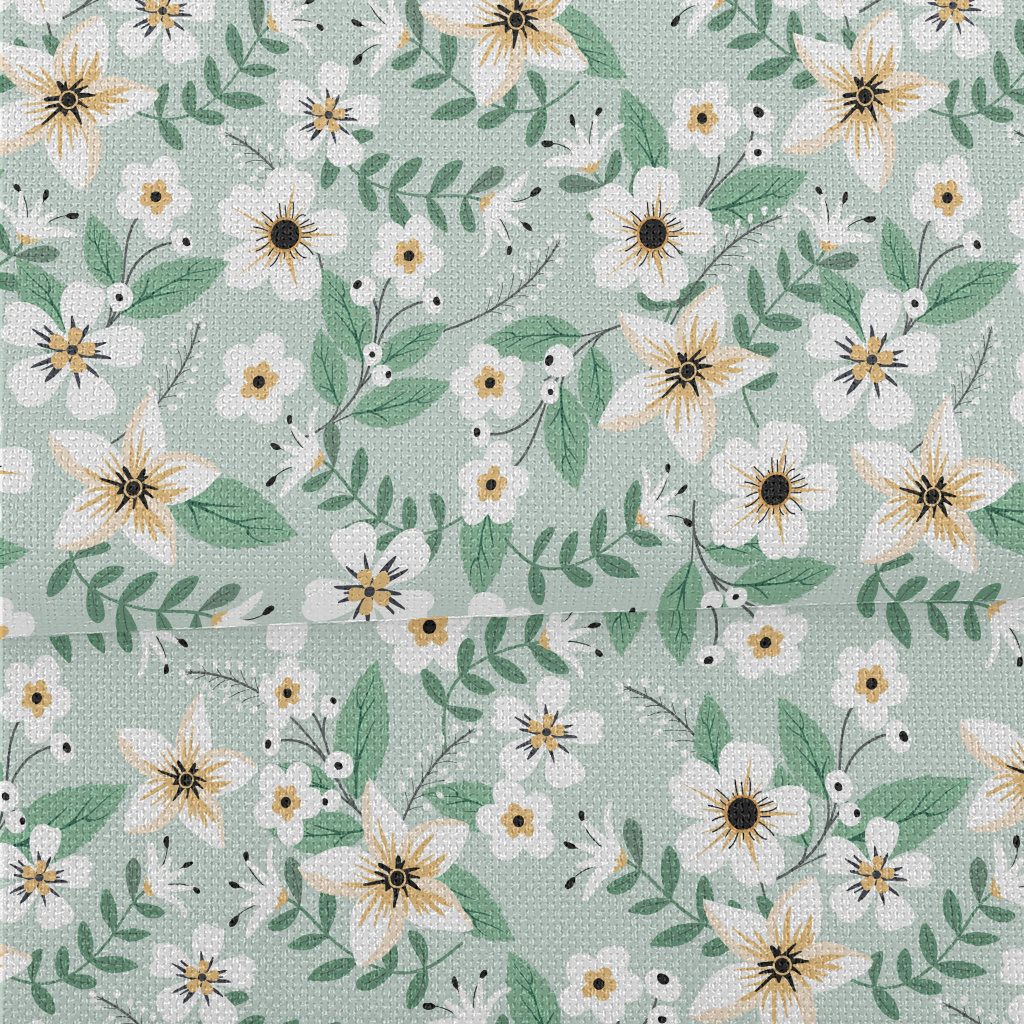 Colorful White Flowers And Gre Performance Linen