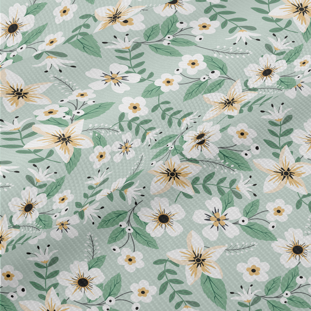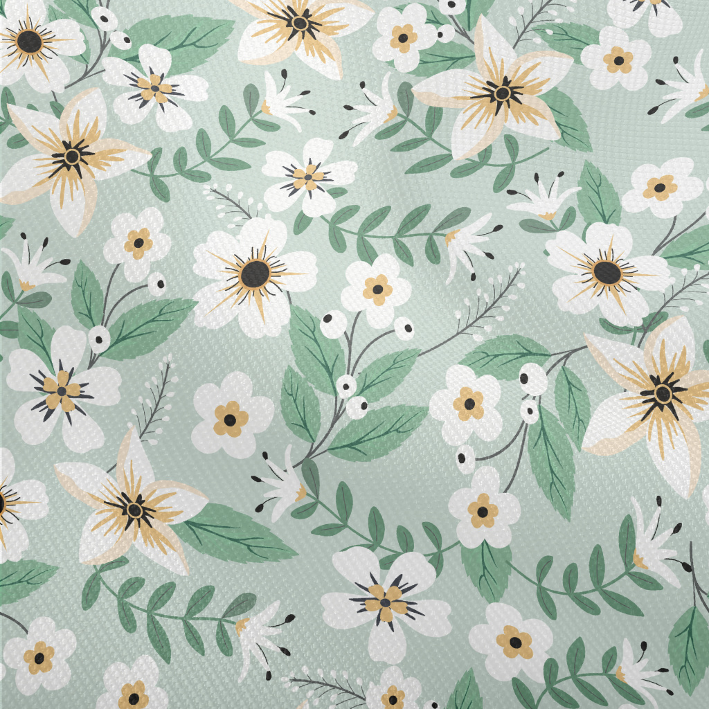 Colorful White Flowers And Gre Dobby