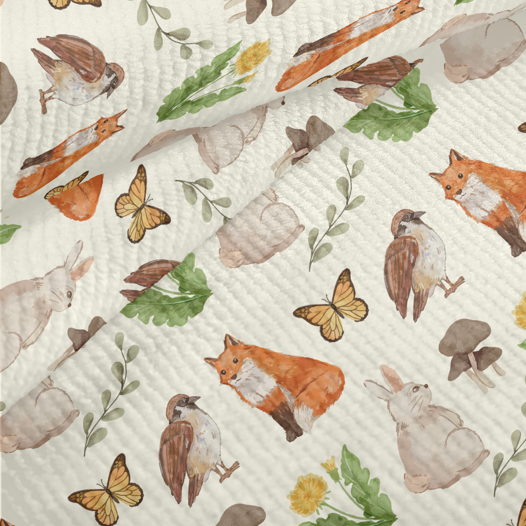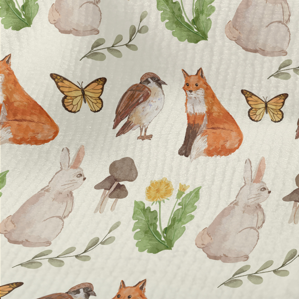 Watercolor Rabbit, Fox And Bir Terry