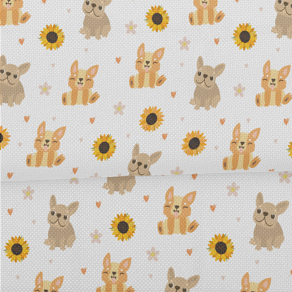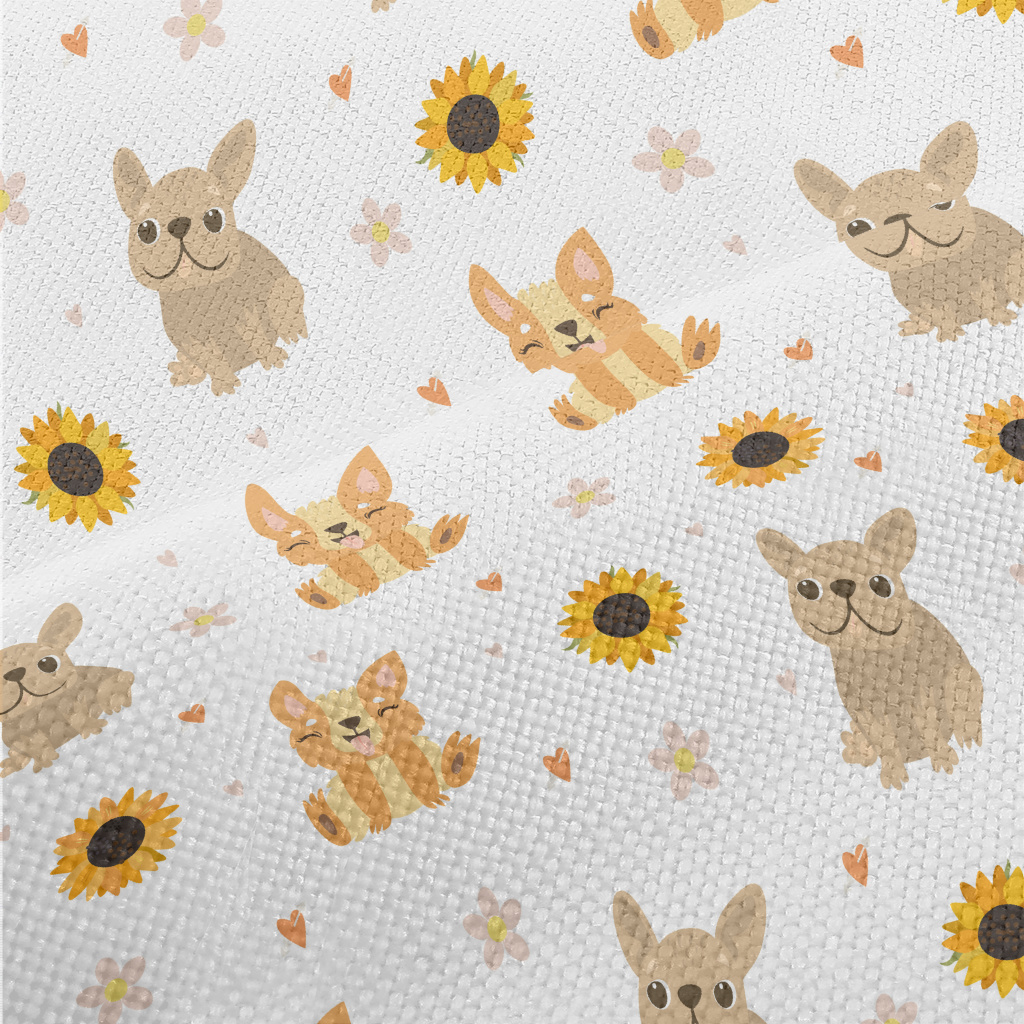 Cute Puppy And Sunflowers Performance Linen