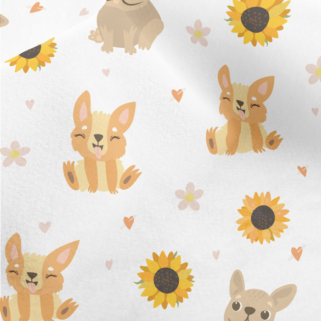 Cute Puppy And Sunflowers Micro Fleece