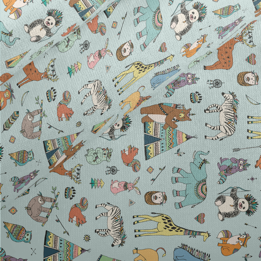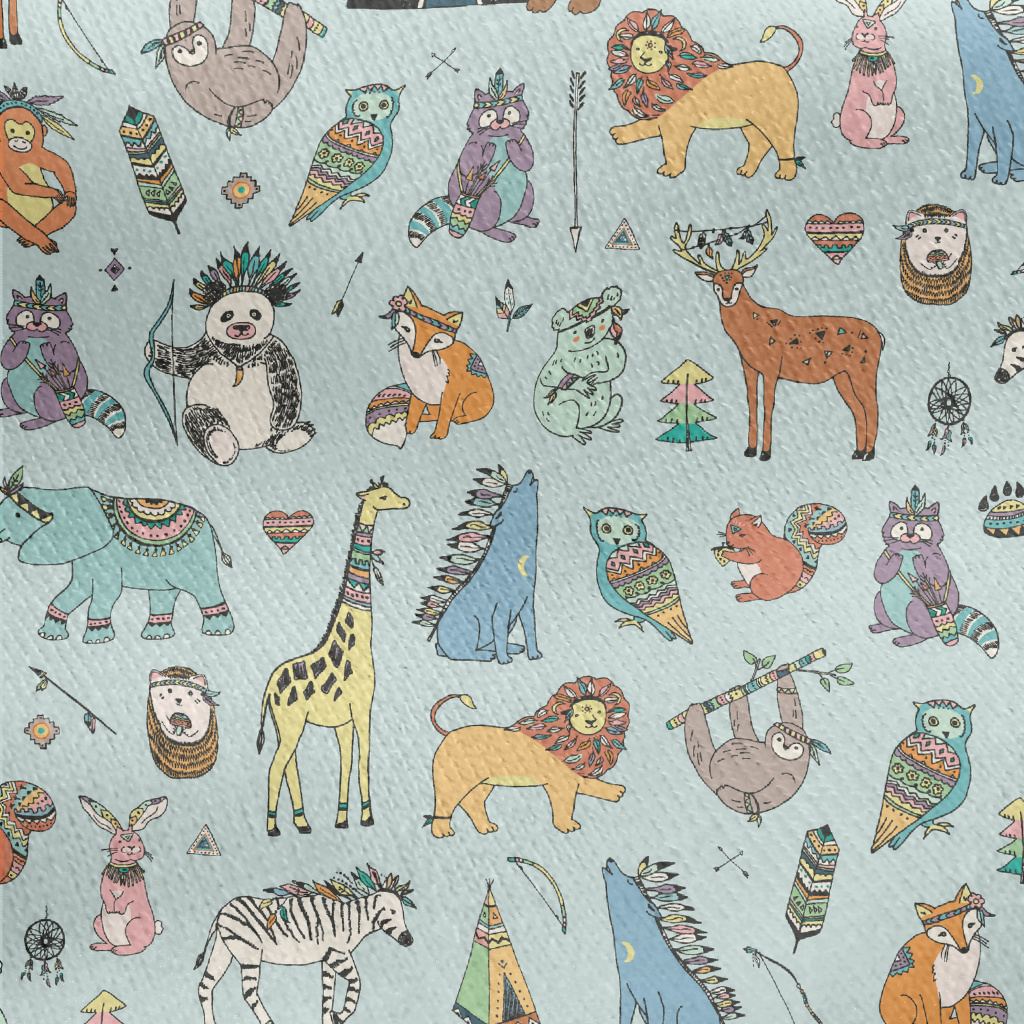 Hand Drawn Indian Animals Jersey Backed Fleece