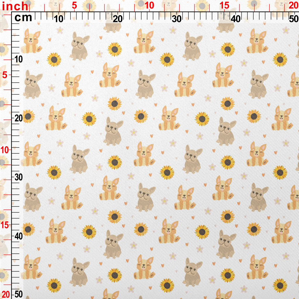 Cute Puppy And Sunflowers Midweight Cotton Poplin