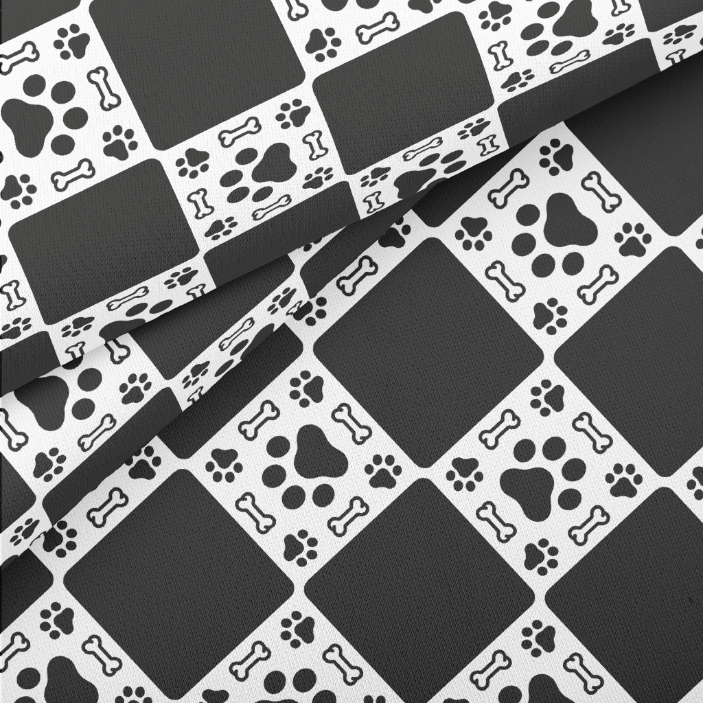 Dog Paw Print Bone With Black Stretch Ponte