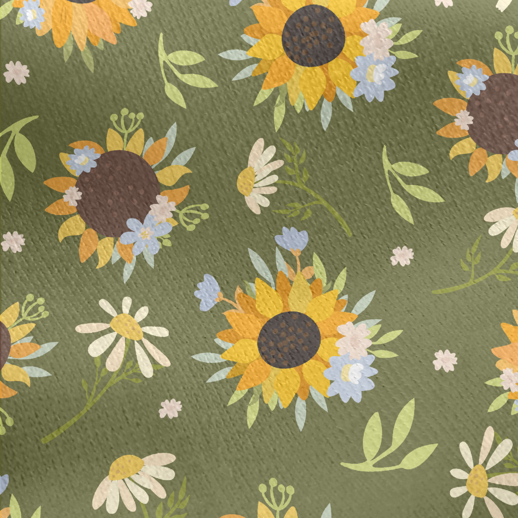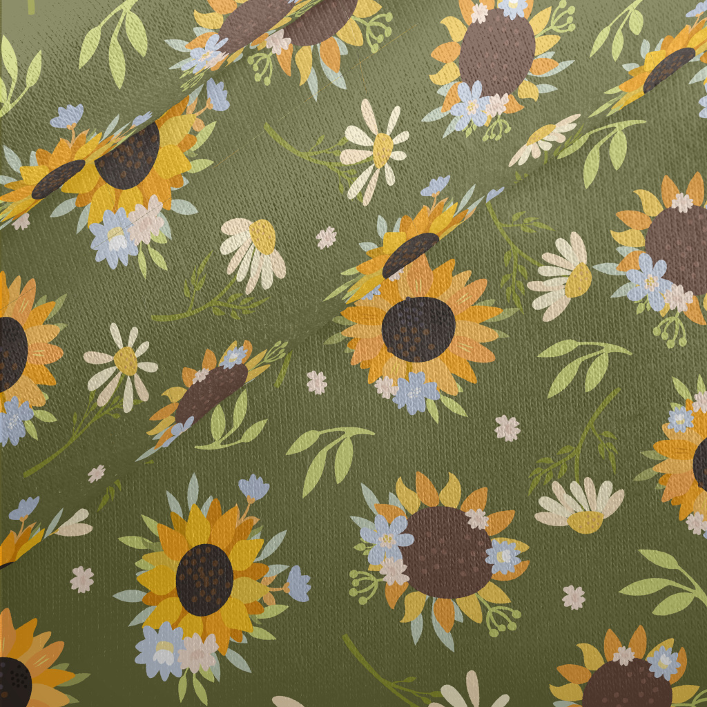 Beautiful Hand Drawn Sunflower Jersey Backed Fleece