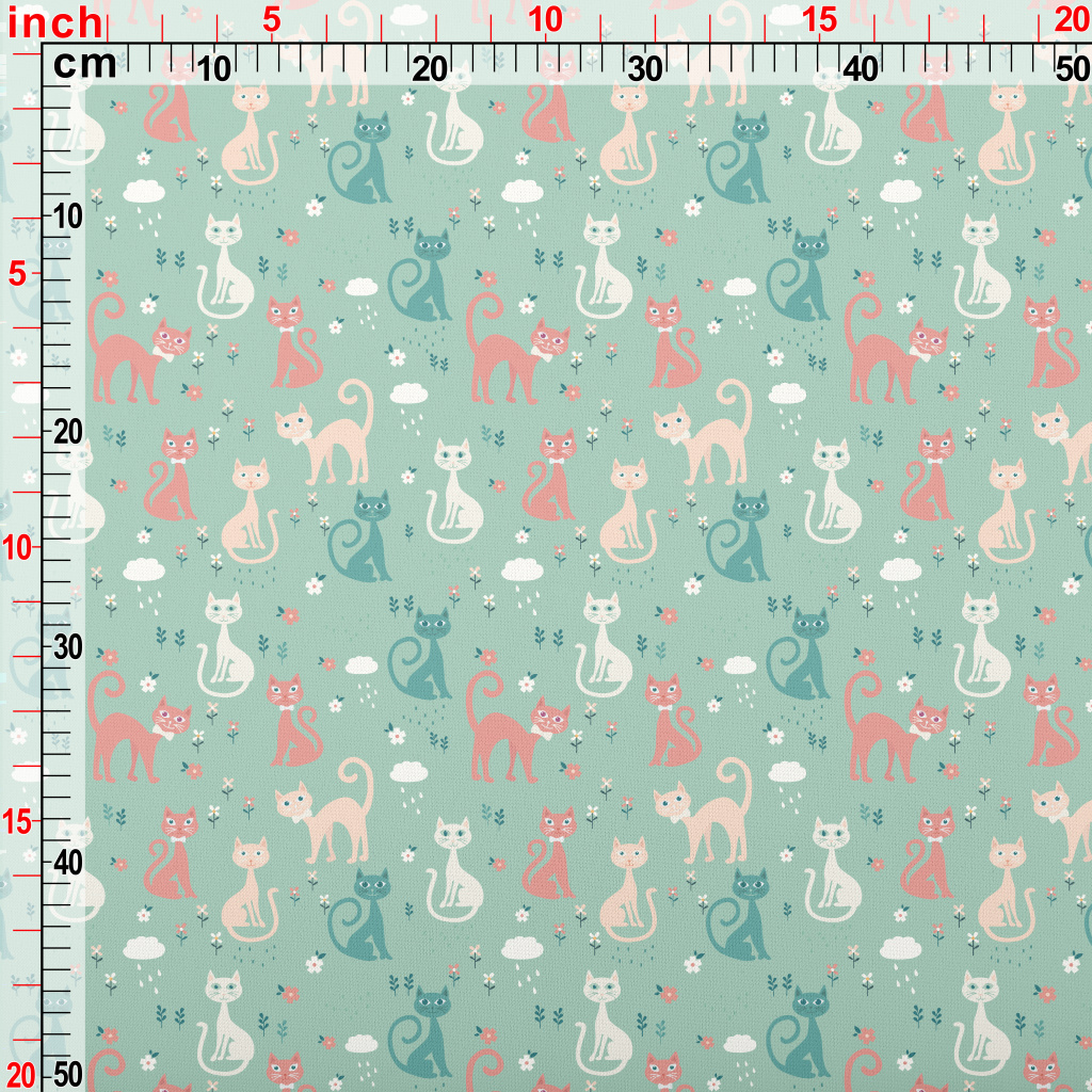 Colorful Cats And Flowers Lightweight Cotton Poplin