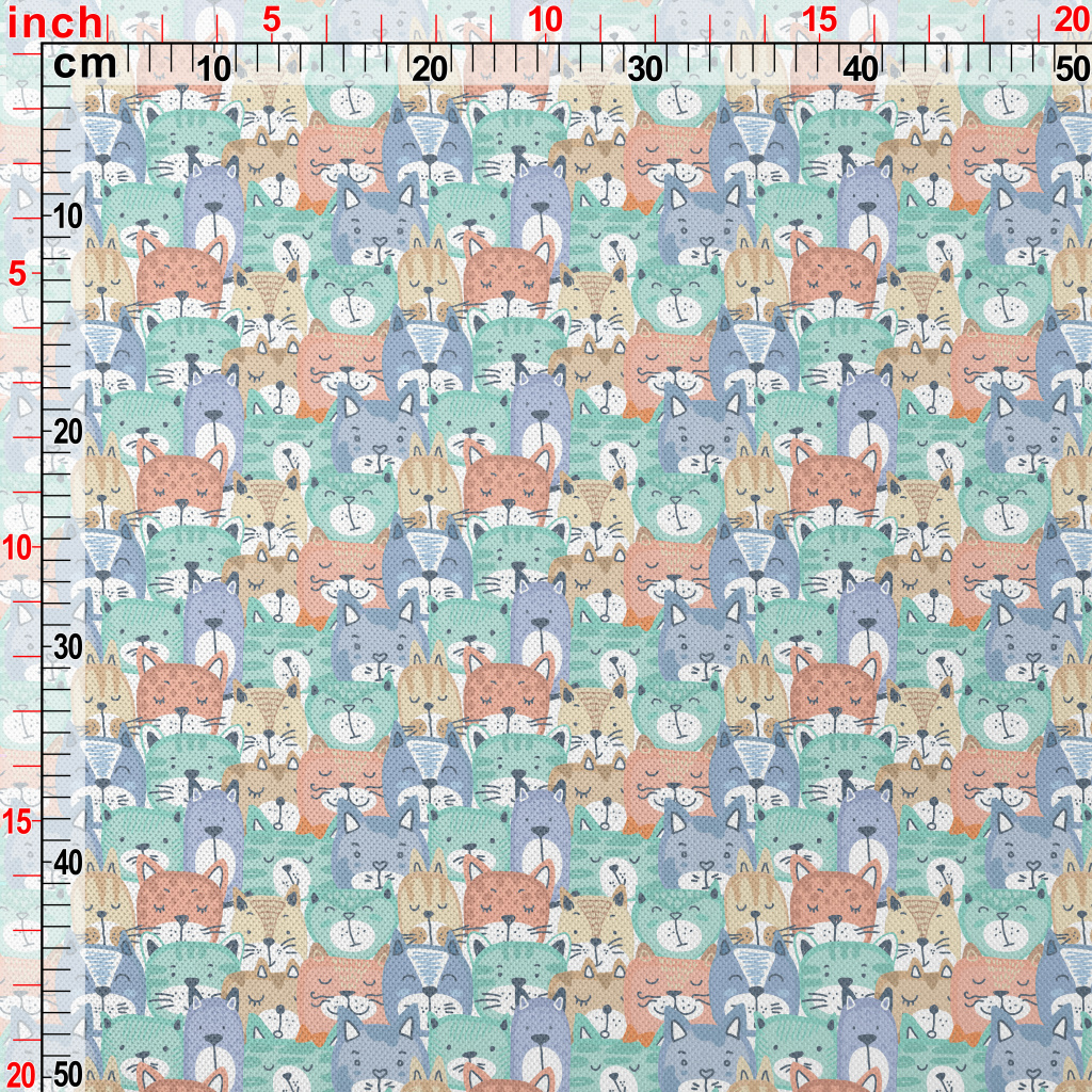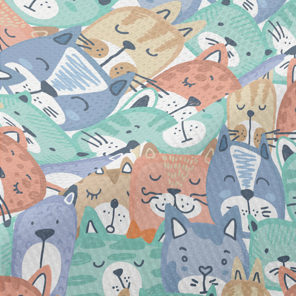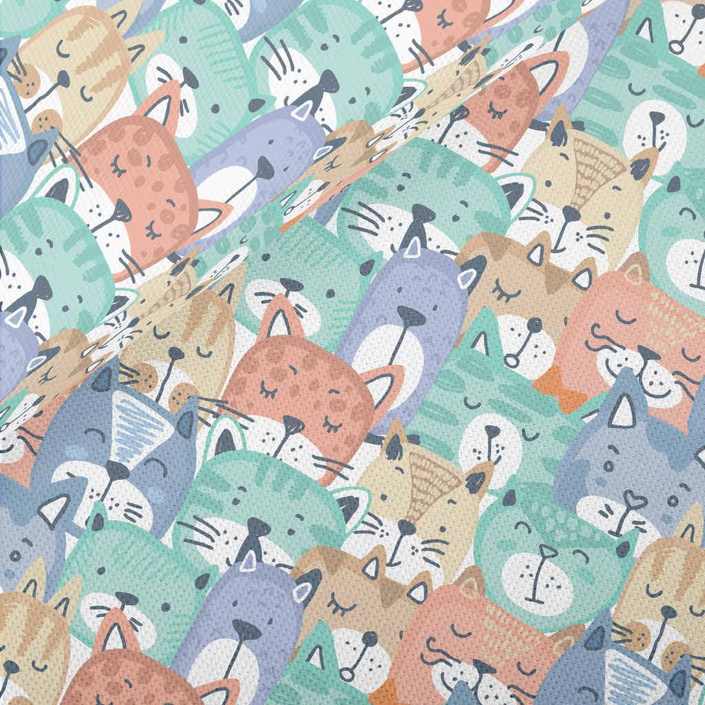Hand Drawn Colorful Cat Face Piqué