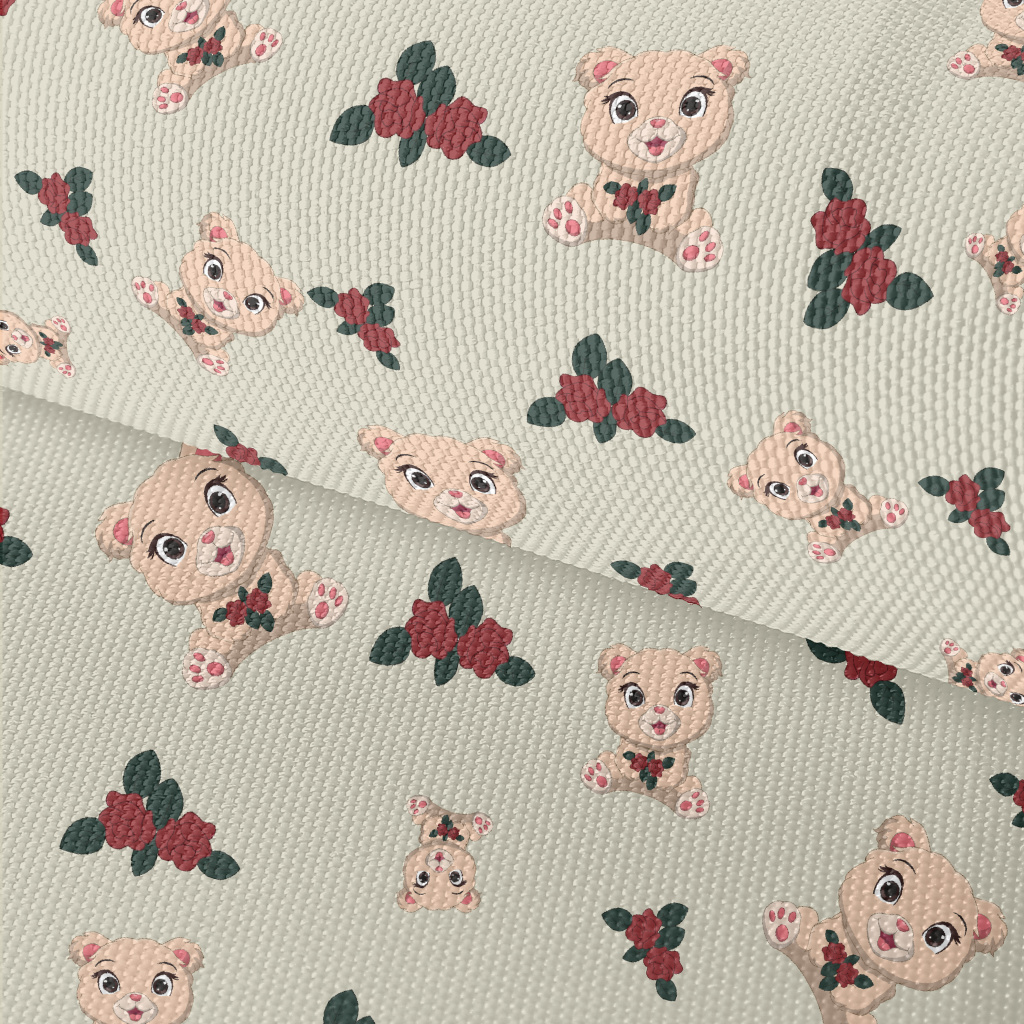 Plush Cute Bear And Flowers Waterproof Oxford