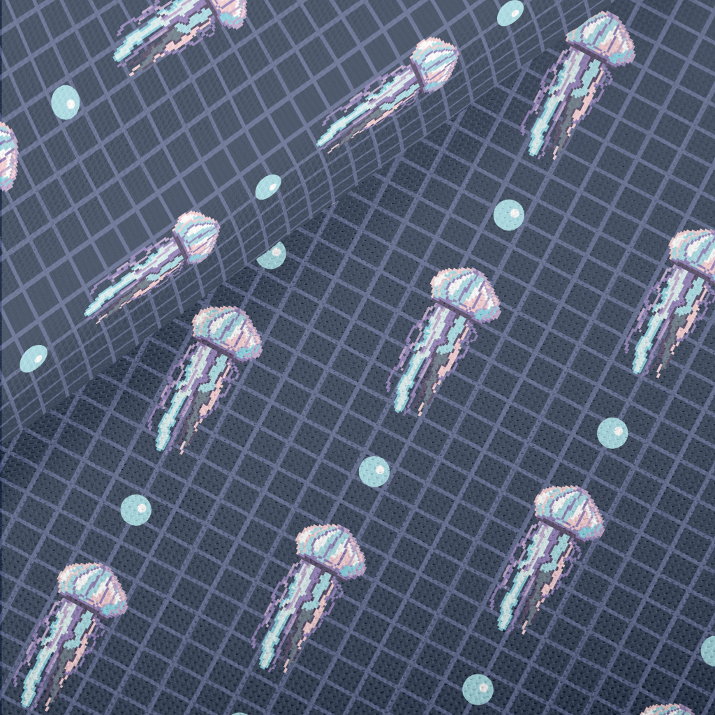 Pixel Style Colorful Jellyfish Piqué