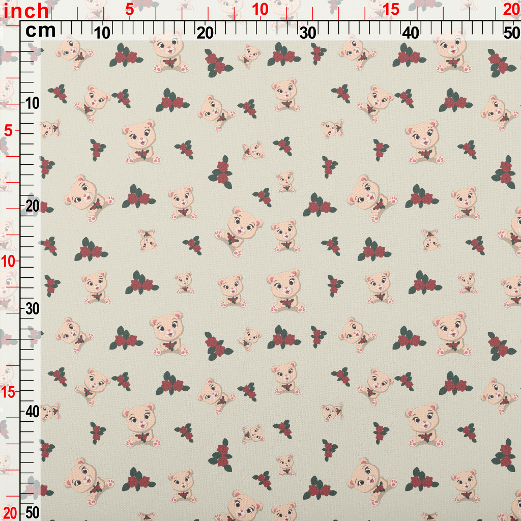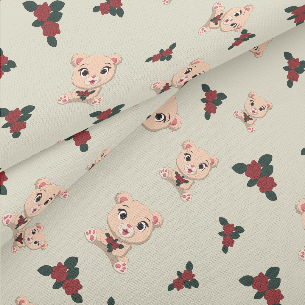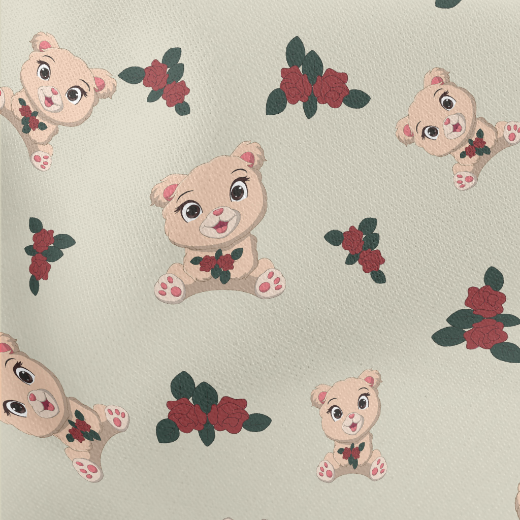 Plush Cute Bear And Flowers Lightweight Cotton Poplin
