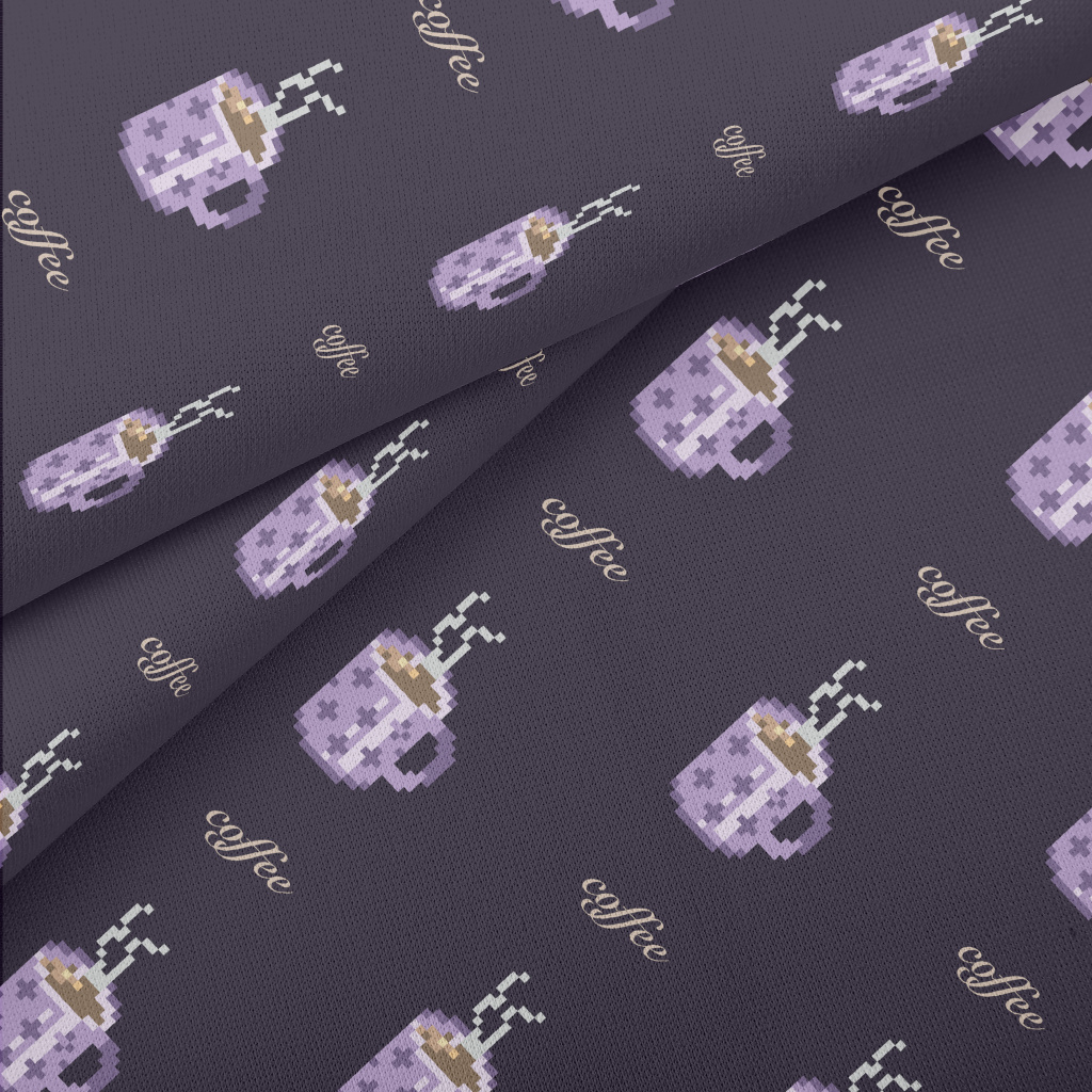 Pixel Style Purple Coffee Cup Lightweight Cotton Poplin