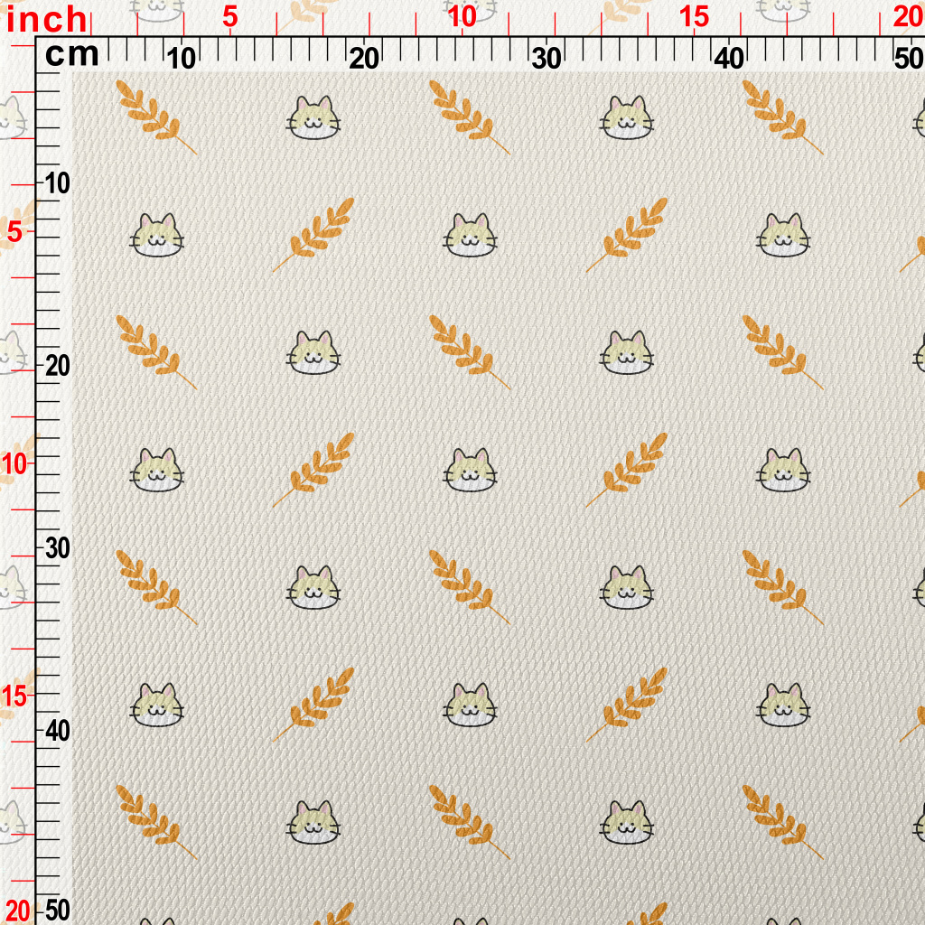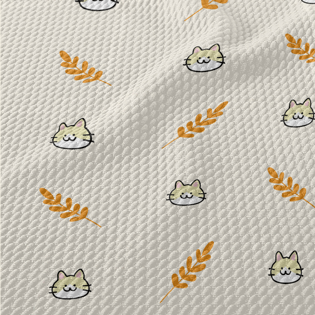 Cute Little Cat And Rice Birdseye Piqué