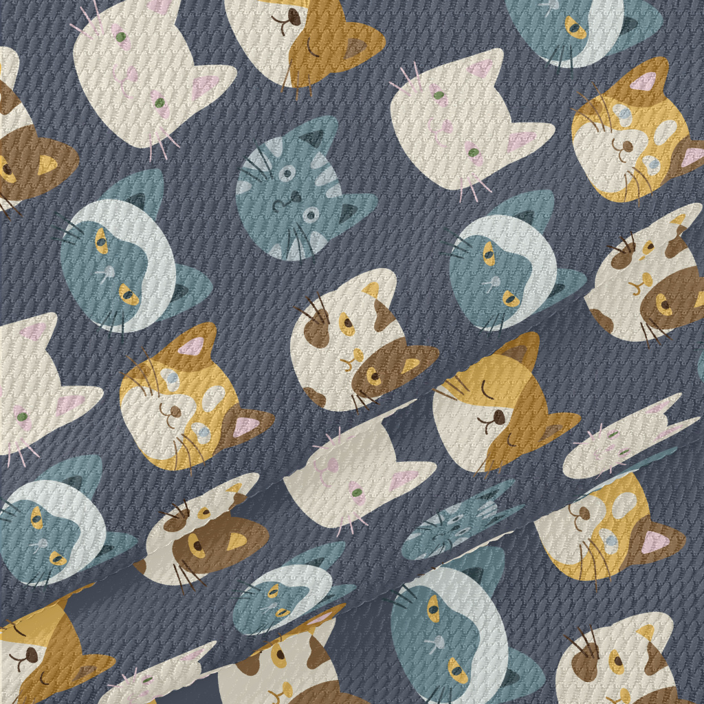 Cute Cats With Different Expre Birdseye Piqué
