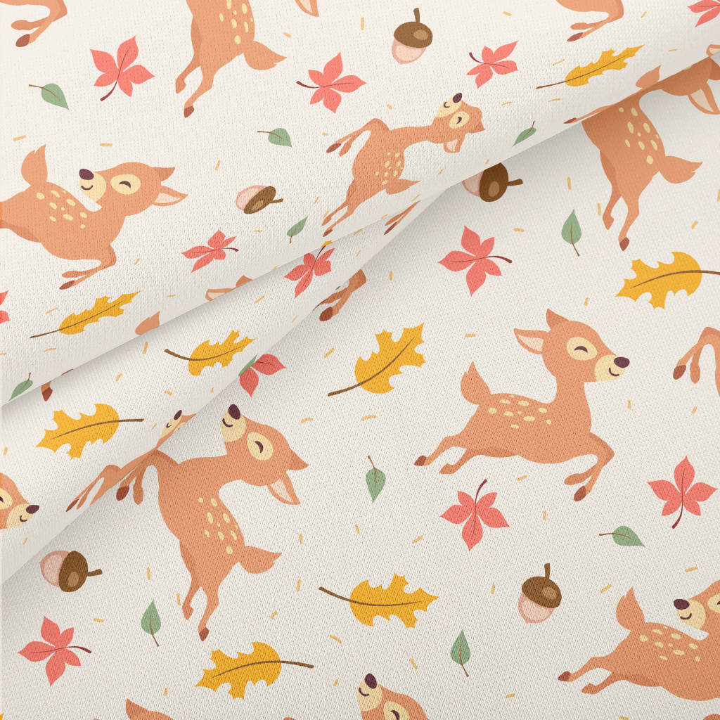 Happy Jumping Forest Deer Lightweight Cotton Poplin