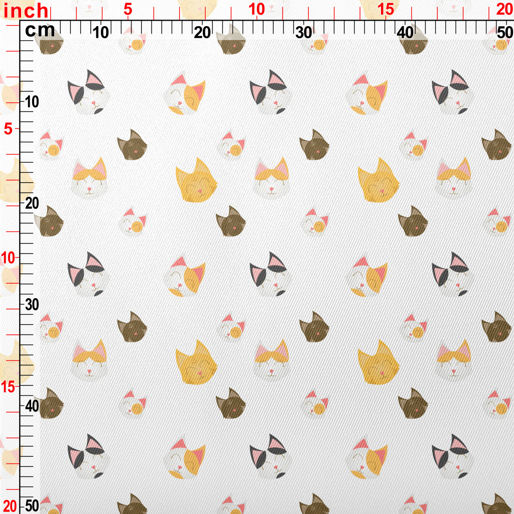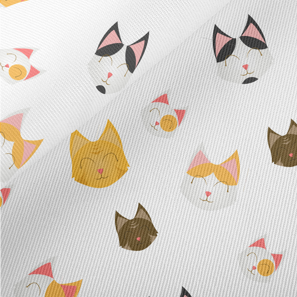 Smiling Happy Cat Head Midweight Cotton Poplin
