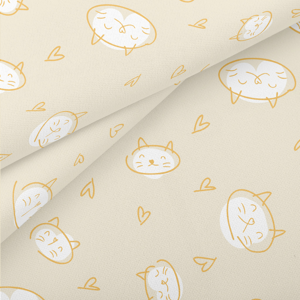 Simple Hand Drawn Cat Lightweight Cotton Poplin
