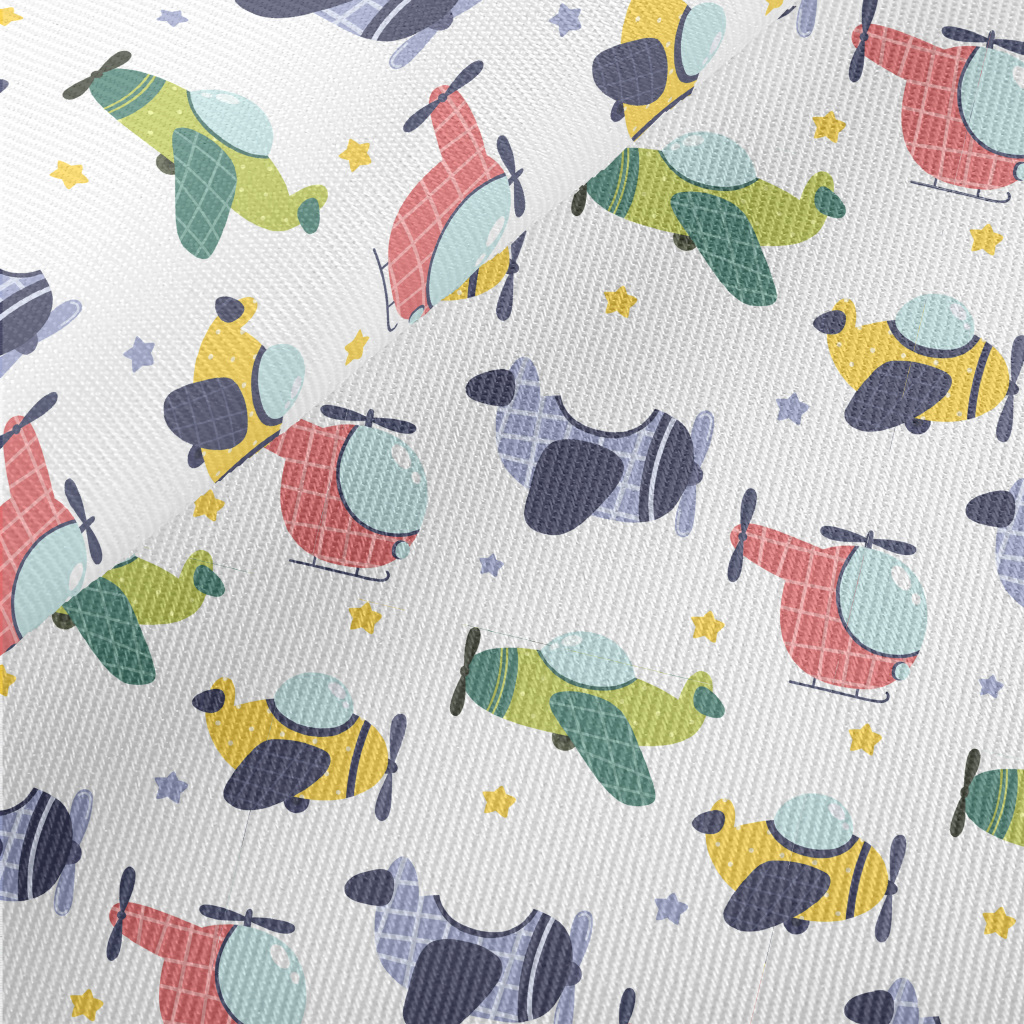 Color Helicopter Plane Midweight Cotton Poplin
