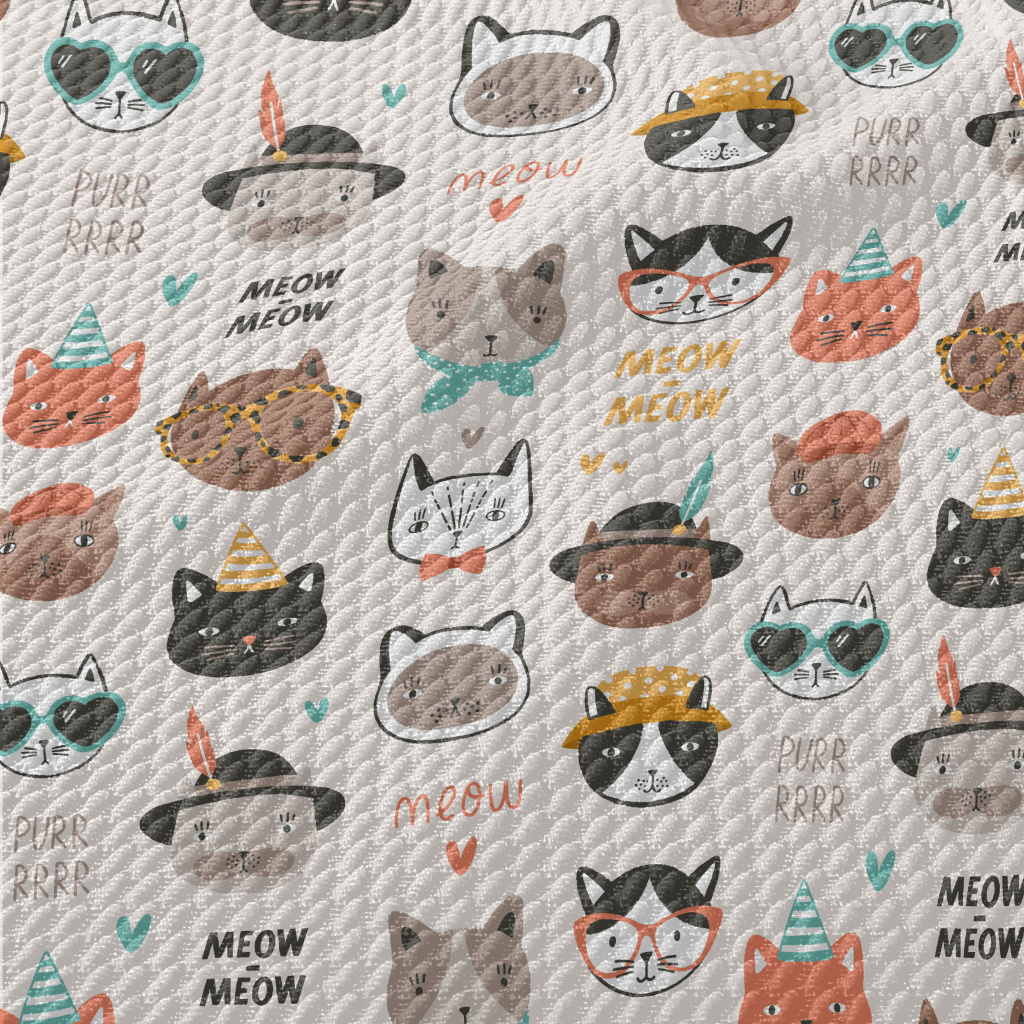 Cute Cat Faces In Different Sh Birdseye Piqué