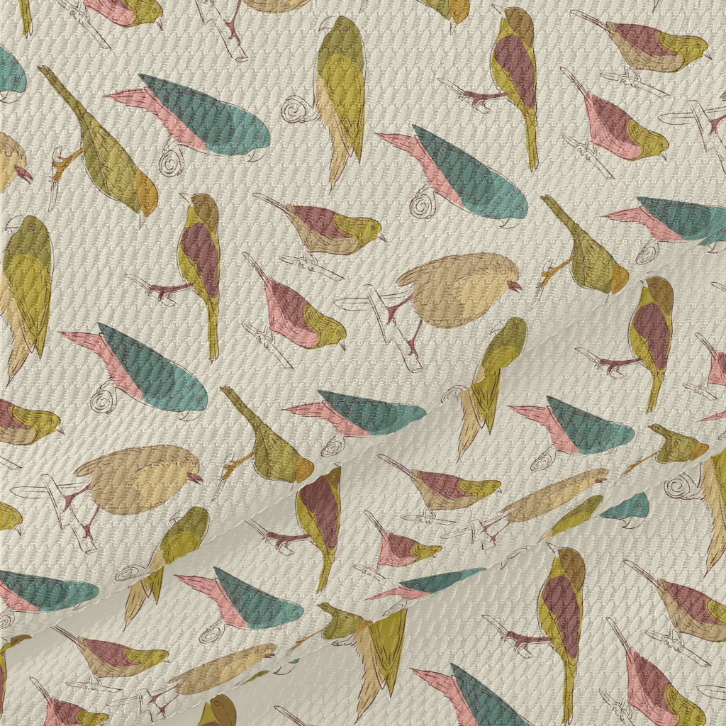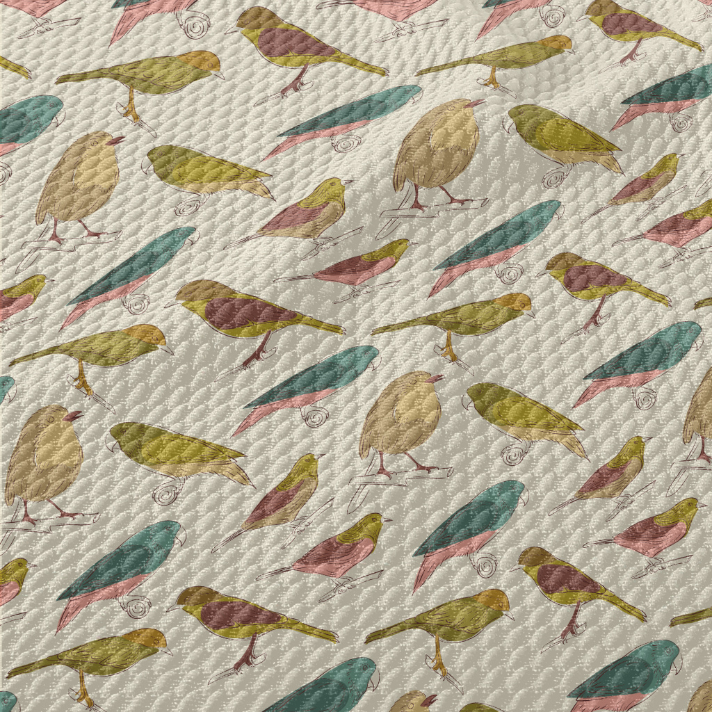 Simple Graffiti Of Various Bir Birdseye Piqué