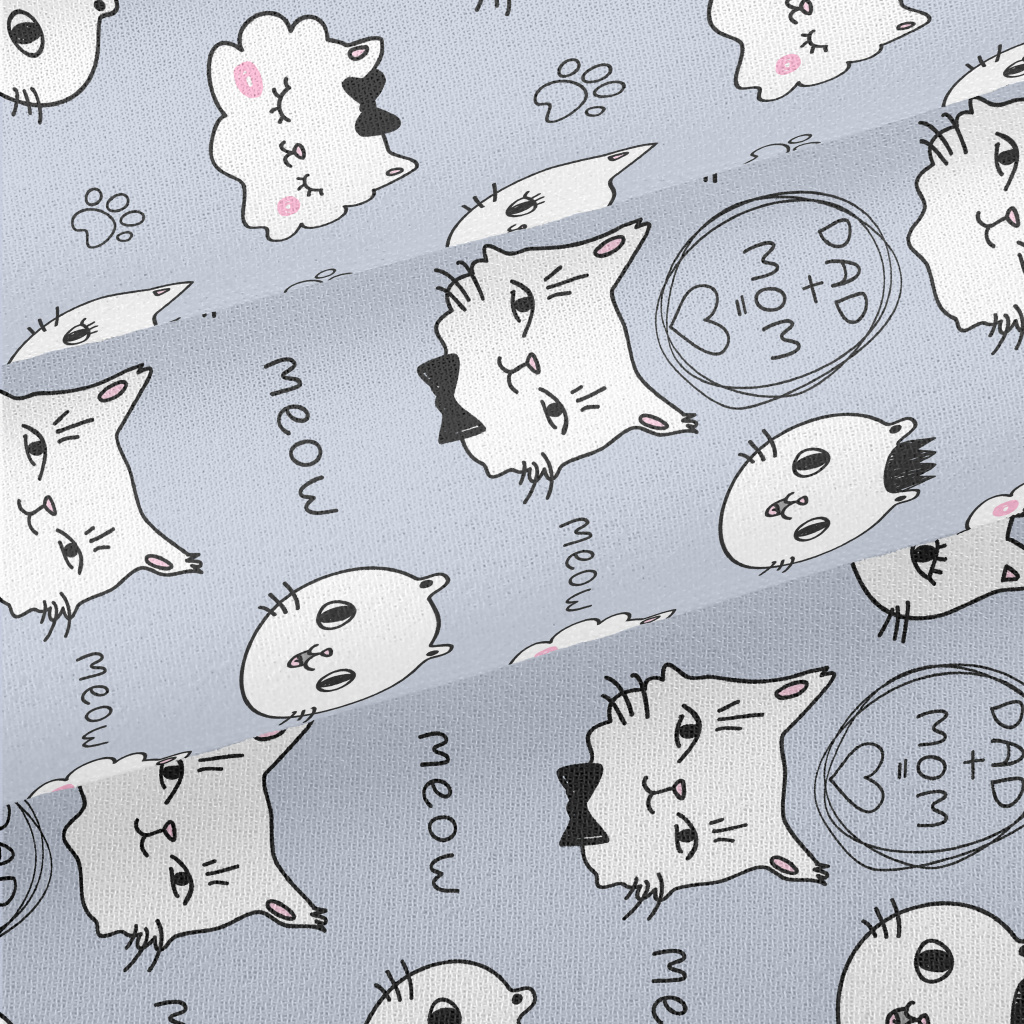 Hand Drawn White Cat Chiffon