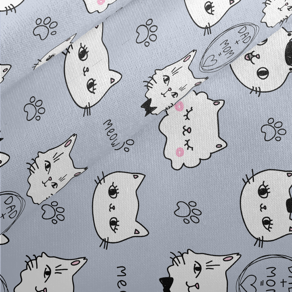 Hand Drawn White Cat Jersey Backed Fleece