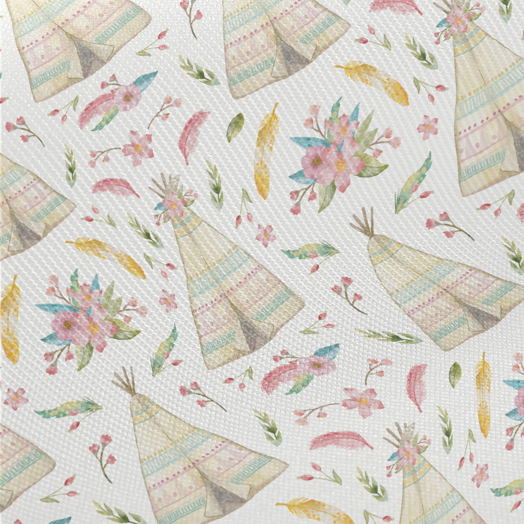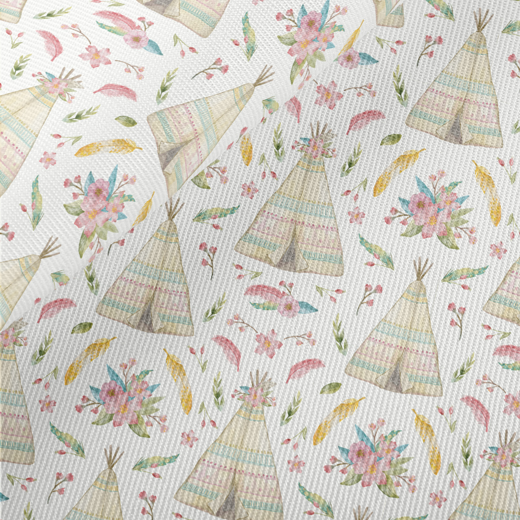 Watercolor Indian Teepee Midweight Cotton Poplin