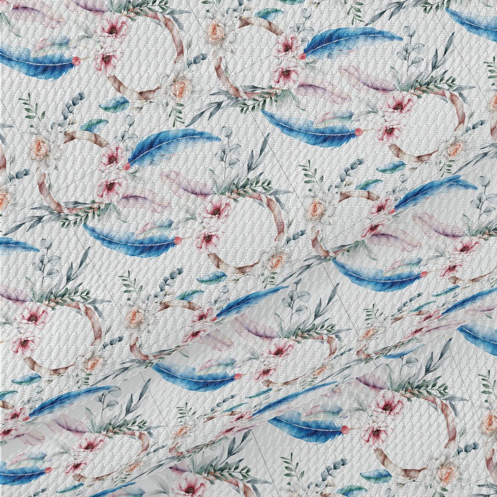 Hand Drawn Colorful Floral Fea Birdseye Piqué