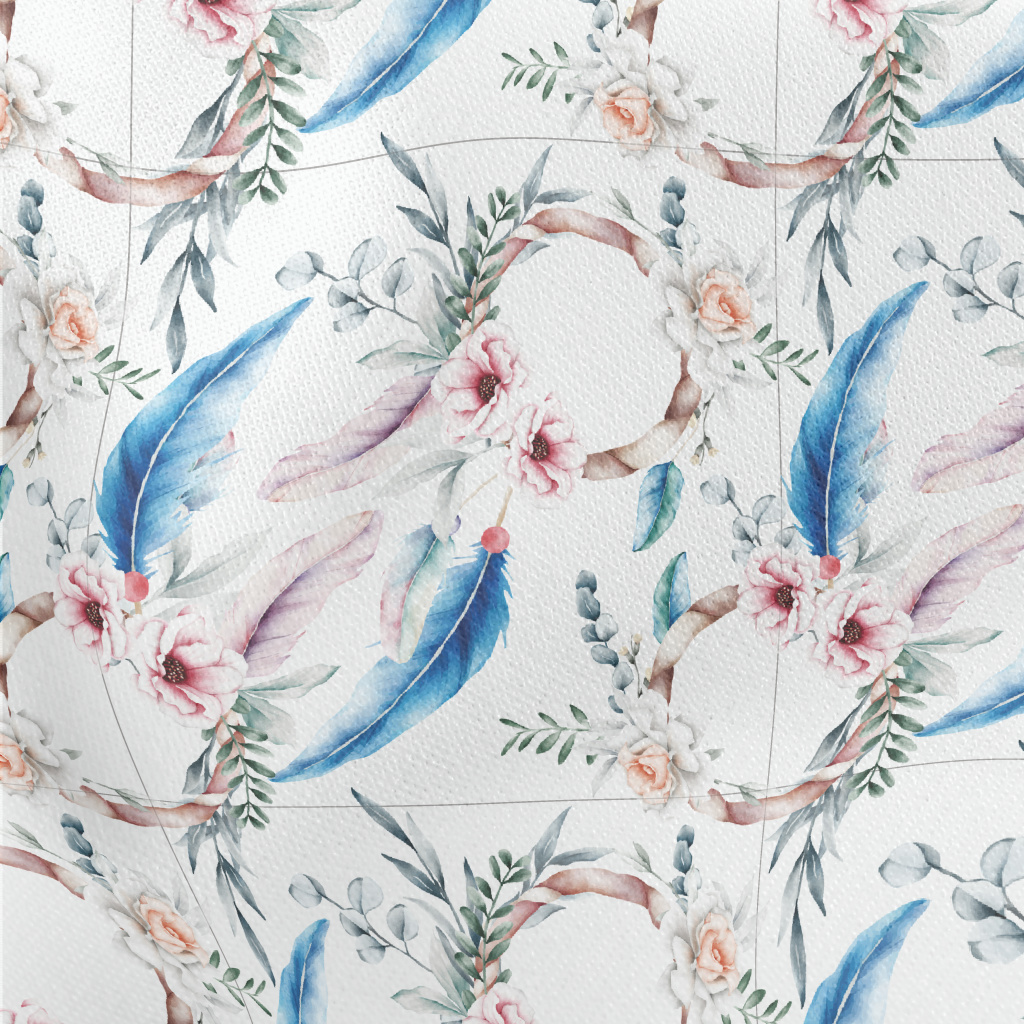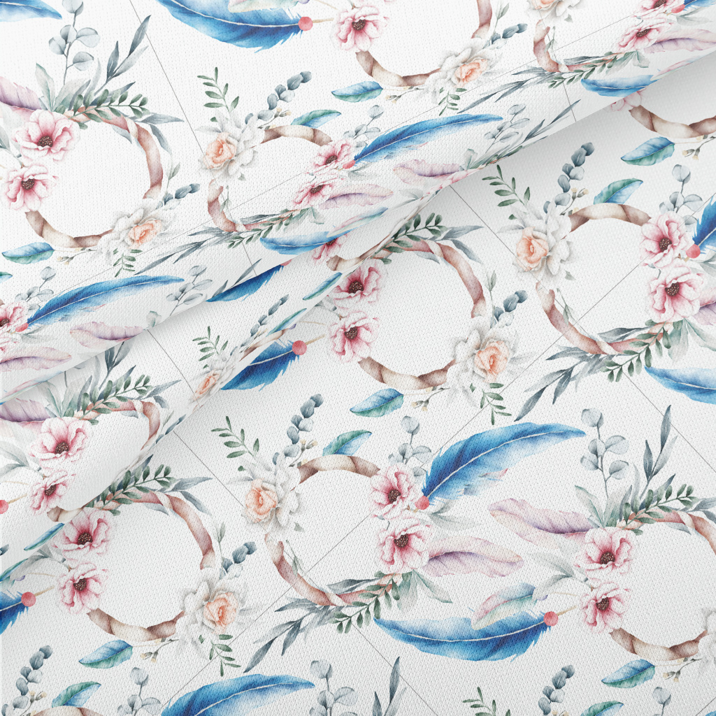 Hand Drawn Colorful Floral Fea Stretch Ponte