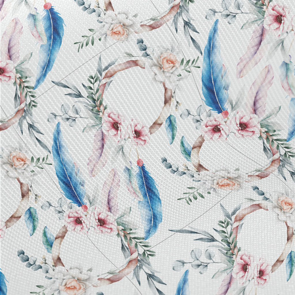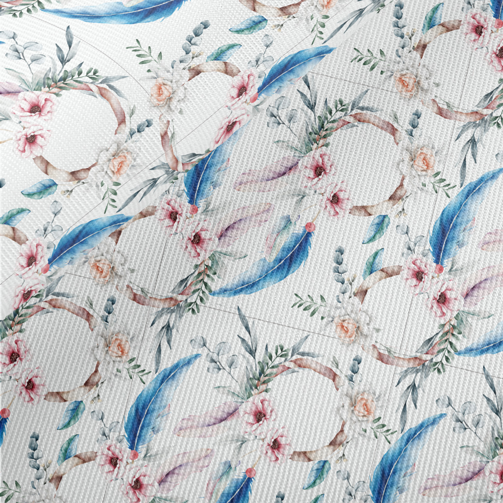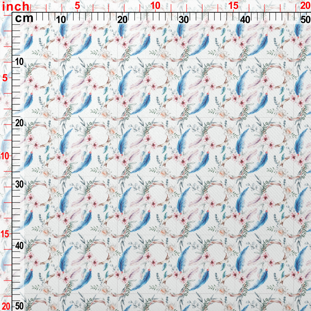 Hand Drawn Colorful Floral Fea Midweight Cotton Poplin