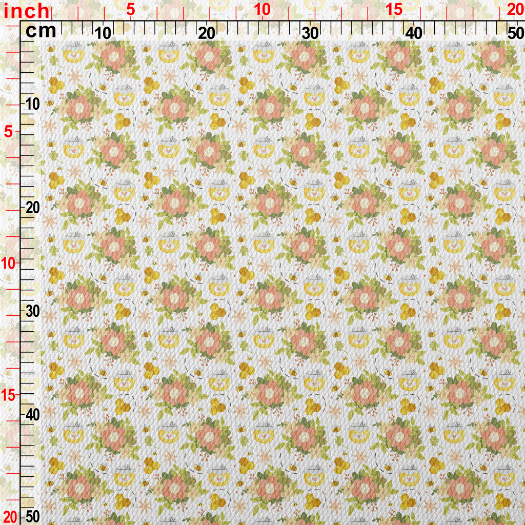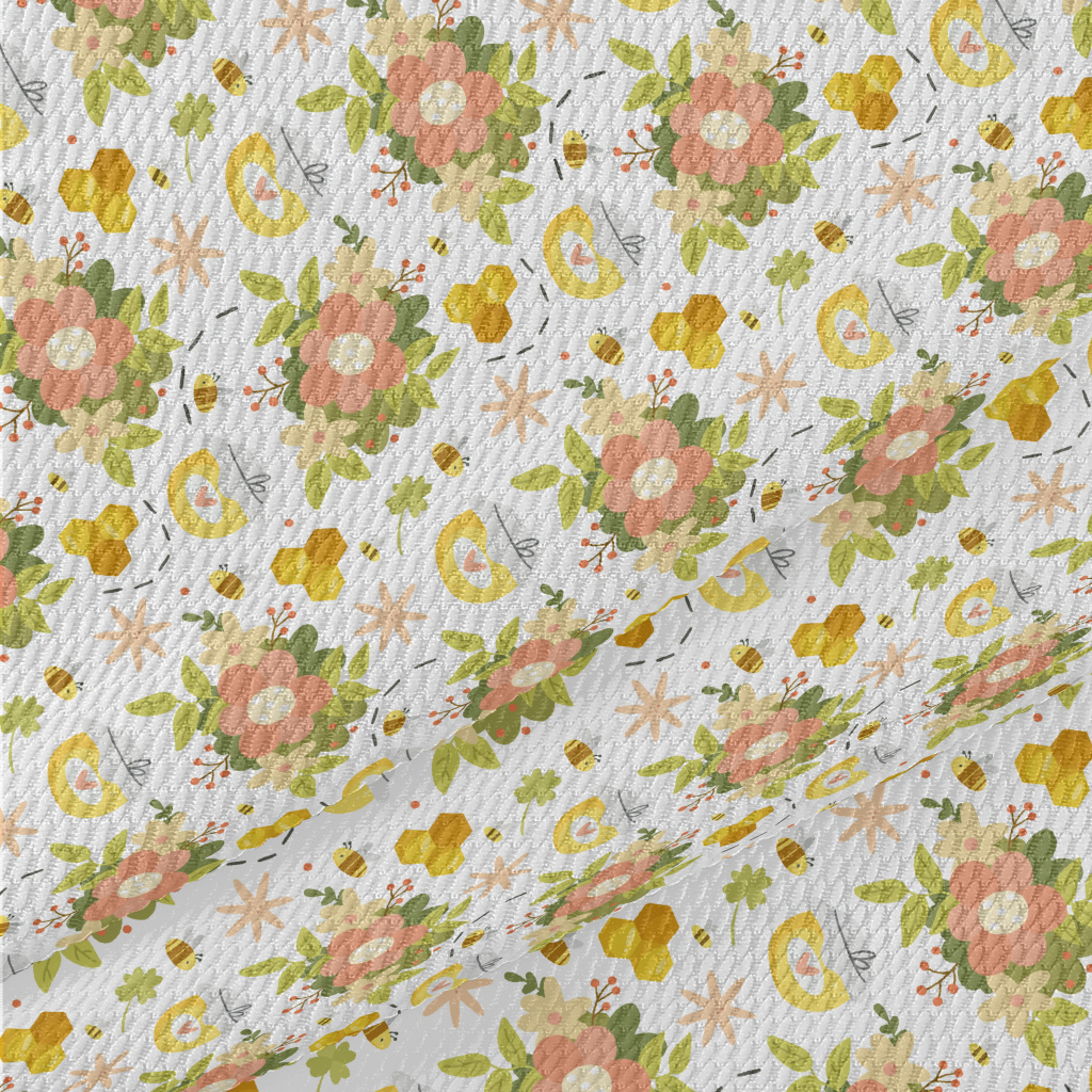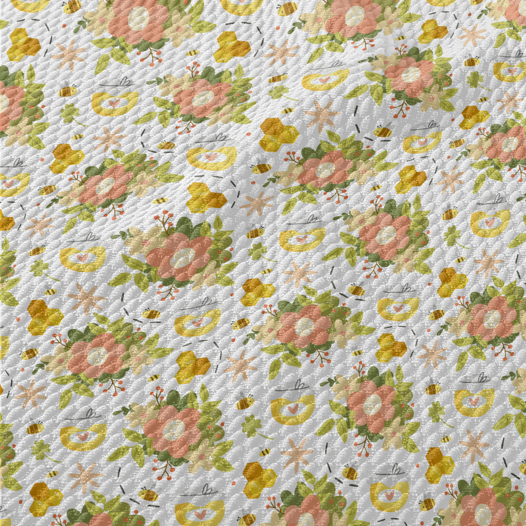 Gentle Flowers And Bee Honey Birdseye Piqué
