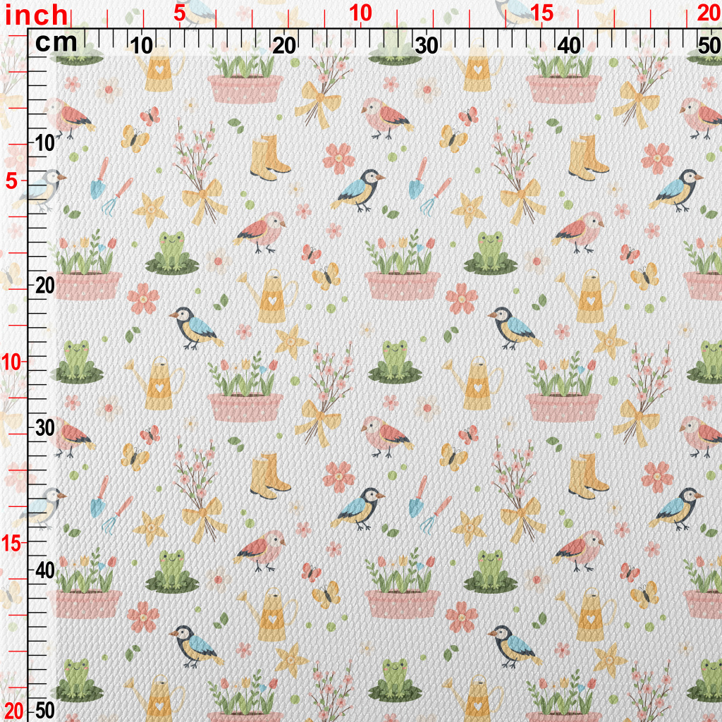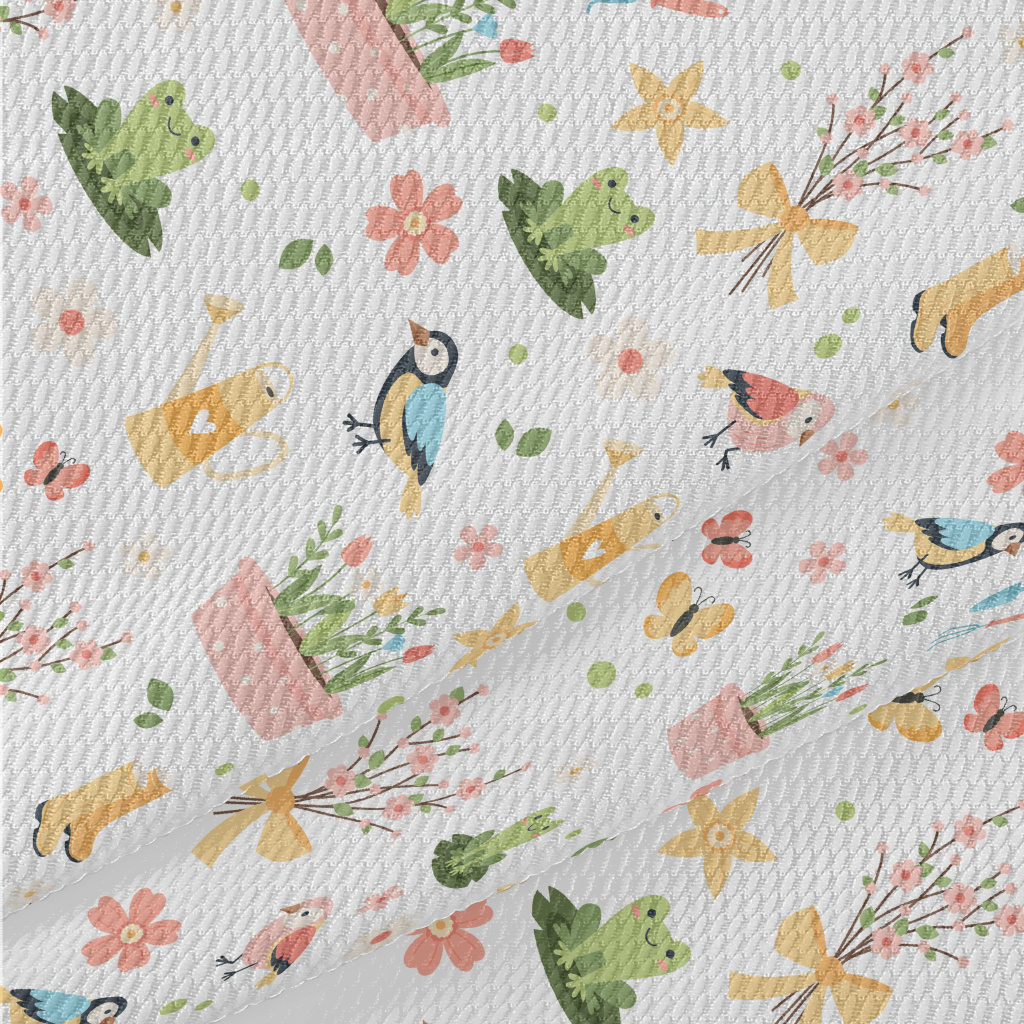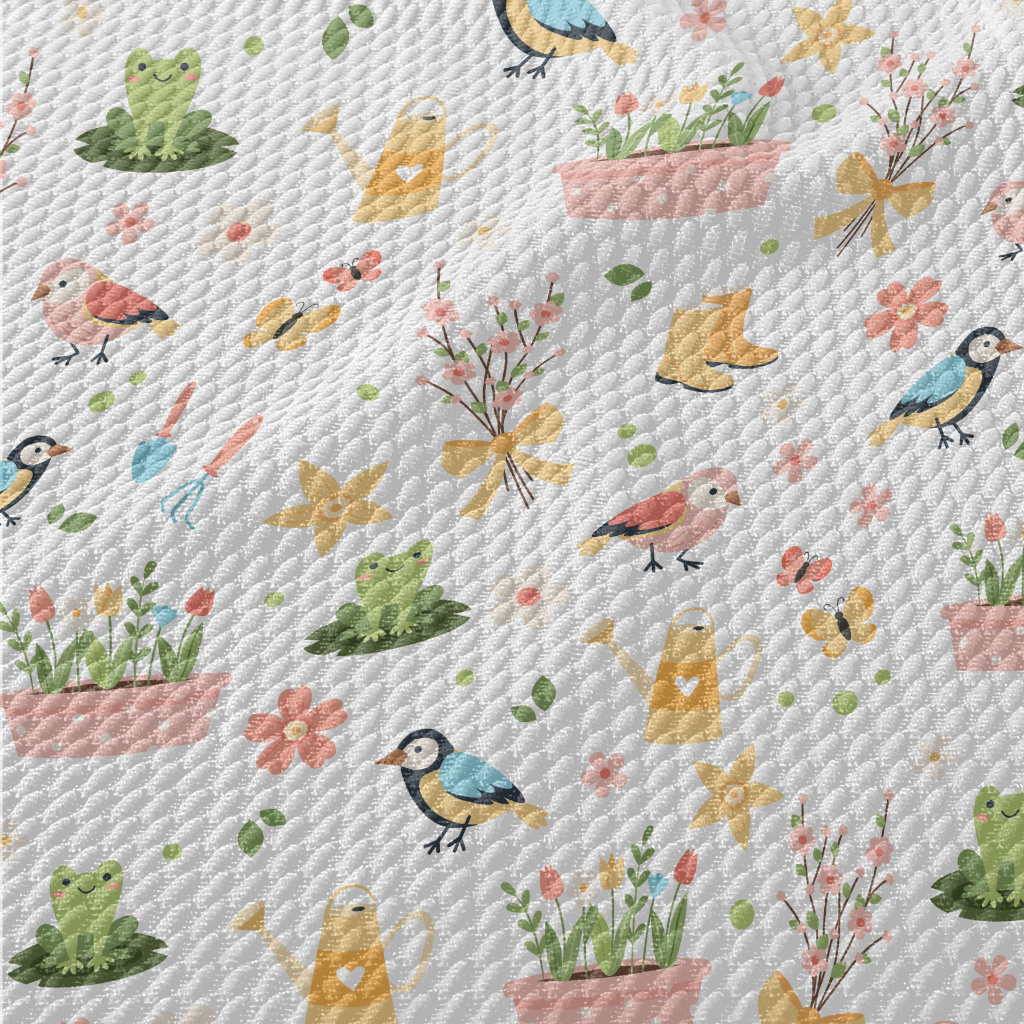 Gentle Colors, Birds, Flowers Birdseye Piqué