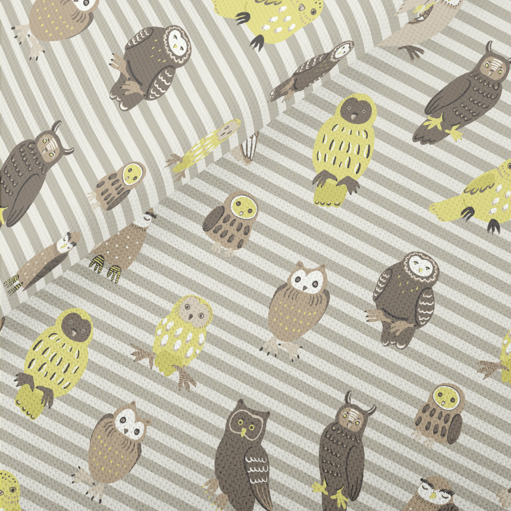 Hand Drawn Various Owls Piqué