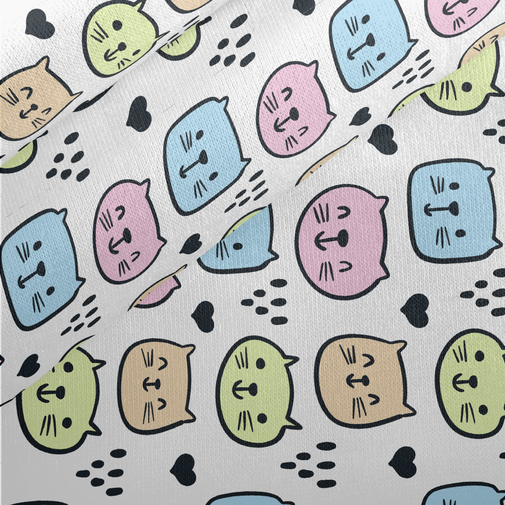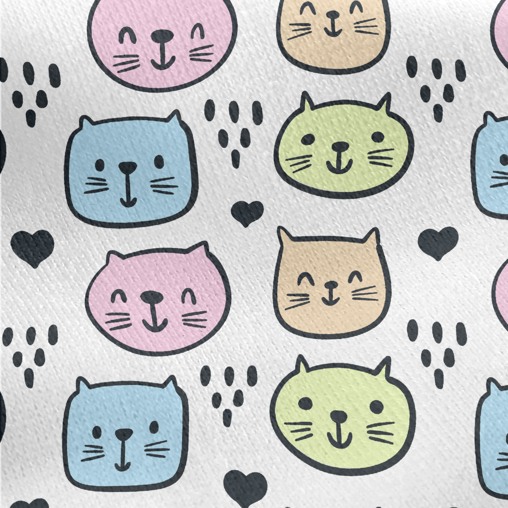 Brightly Colored Cat Jersey Backed Fleece