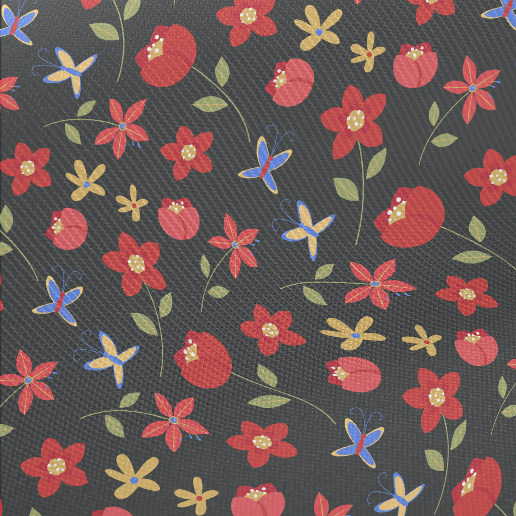 Bright Red Flowers Twill