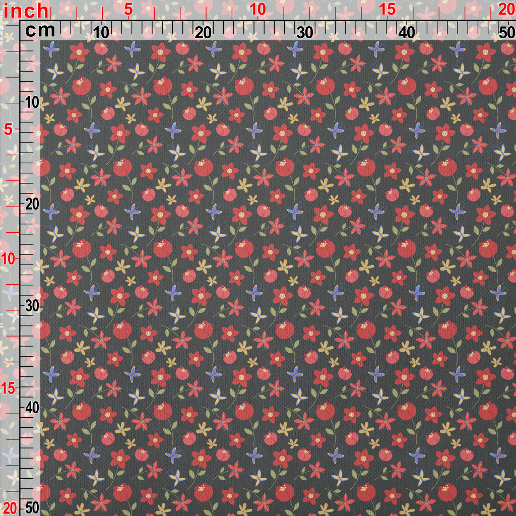 Bright Red Flowers Jersey Backed Fleece