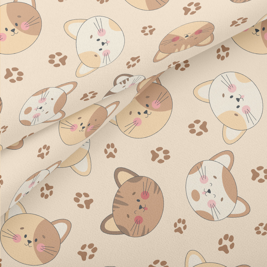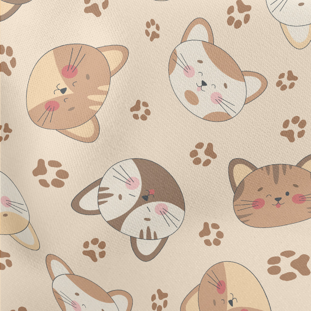 Round And Cute Cat Head Lightweight Cotton Poplin