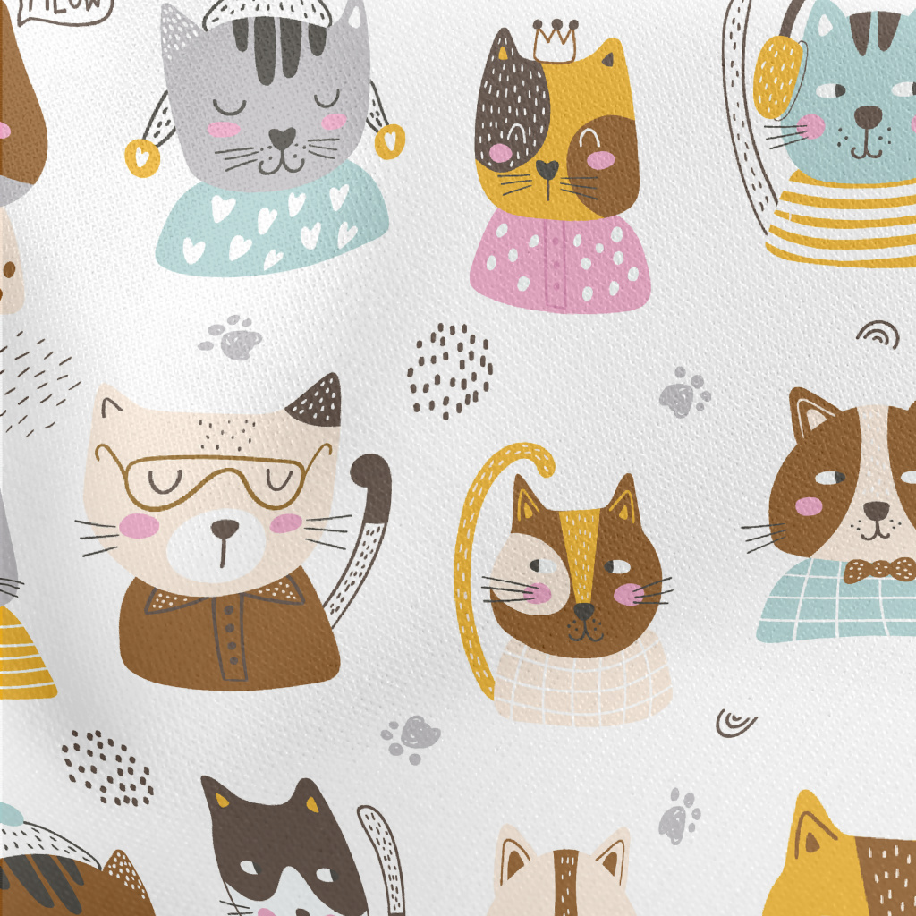 Modern Cute Cat Lightweight Cotton Poplin