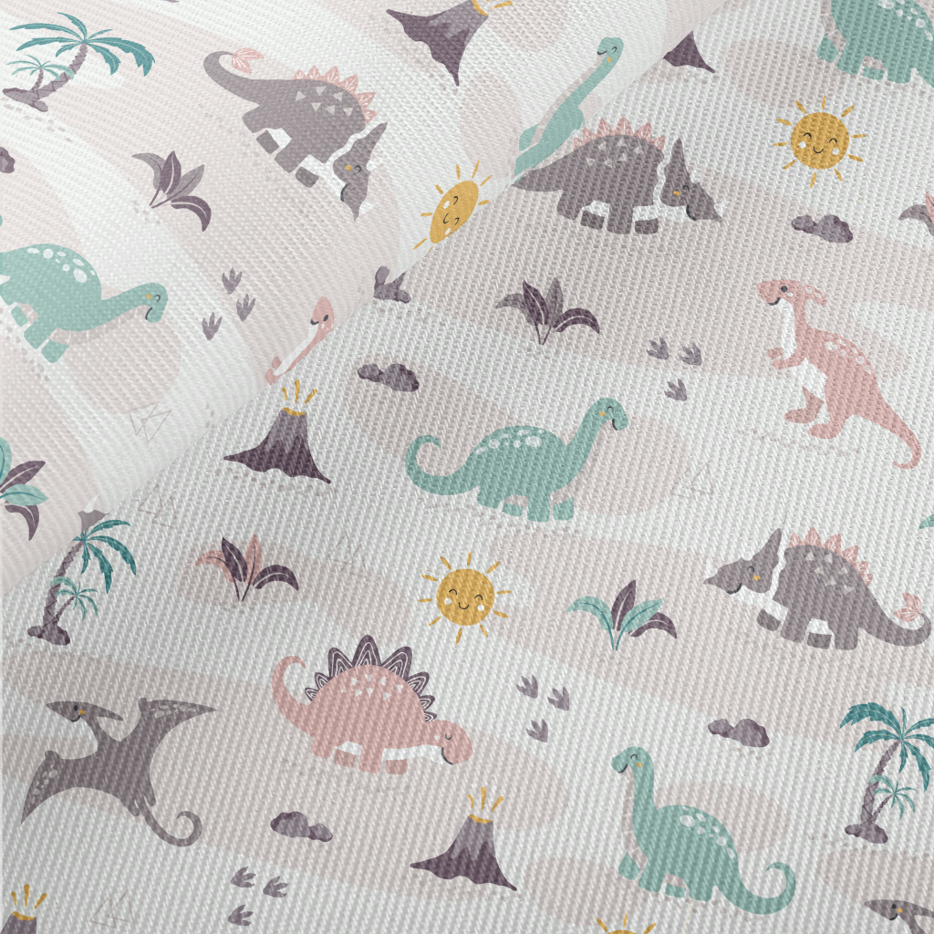 Happy Cute Dinosaur Midweight Cotton Poplin